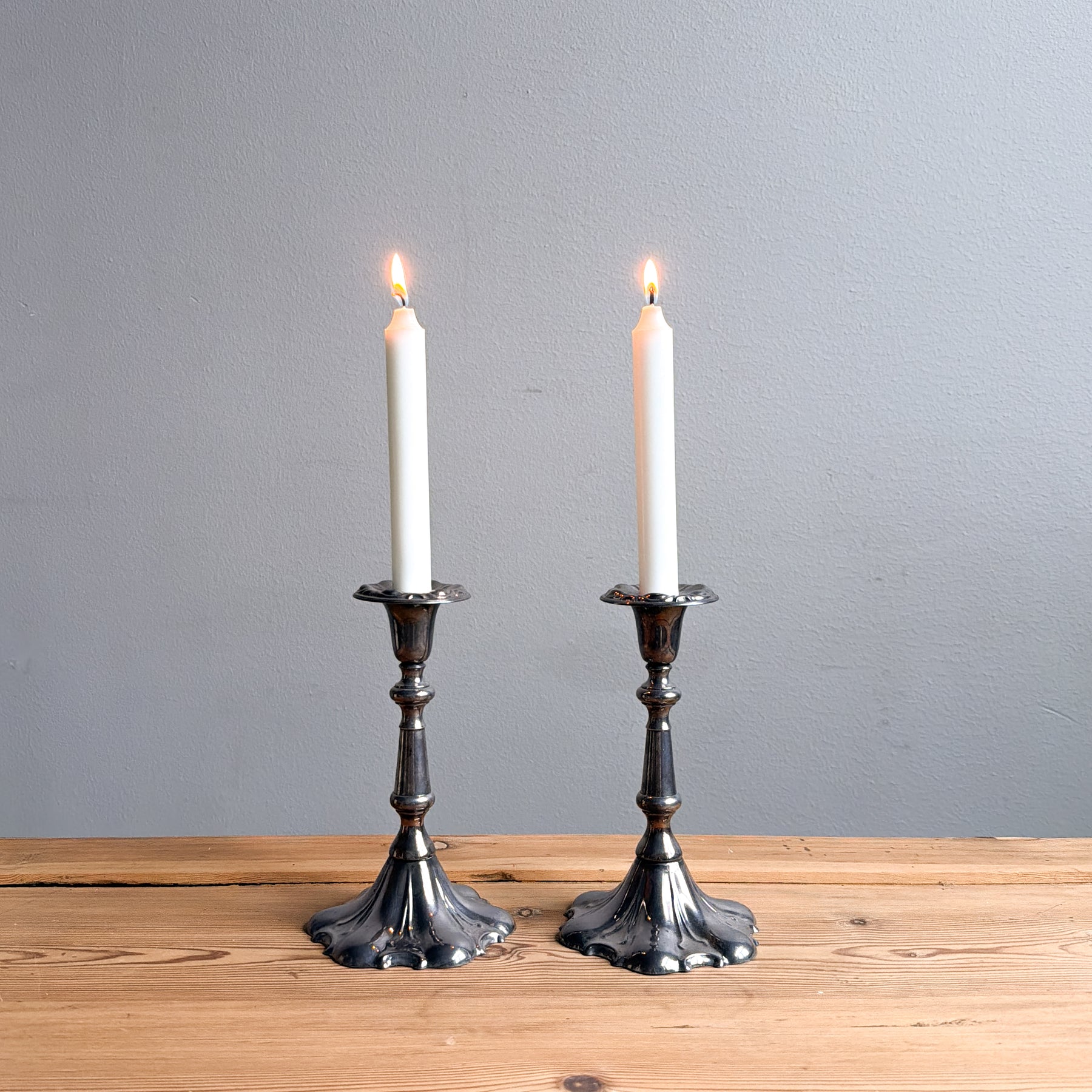 Paret ljusstakar i nysilver i rokokostil, sekelskifte 1800/1900-tal. Tyngd i botten.