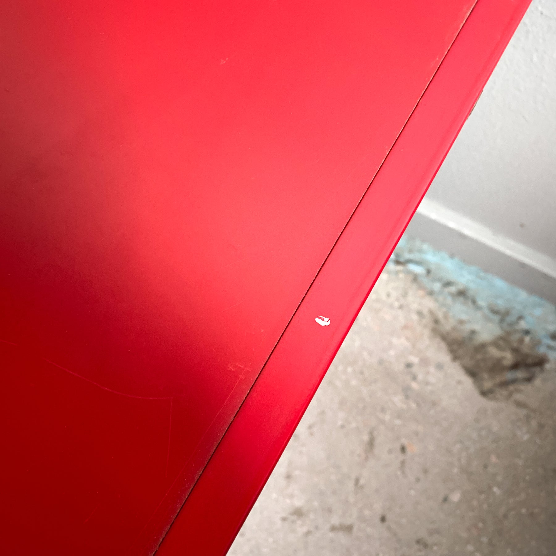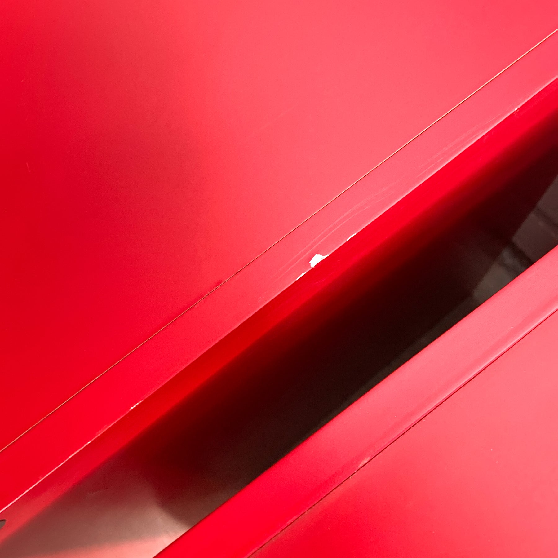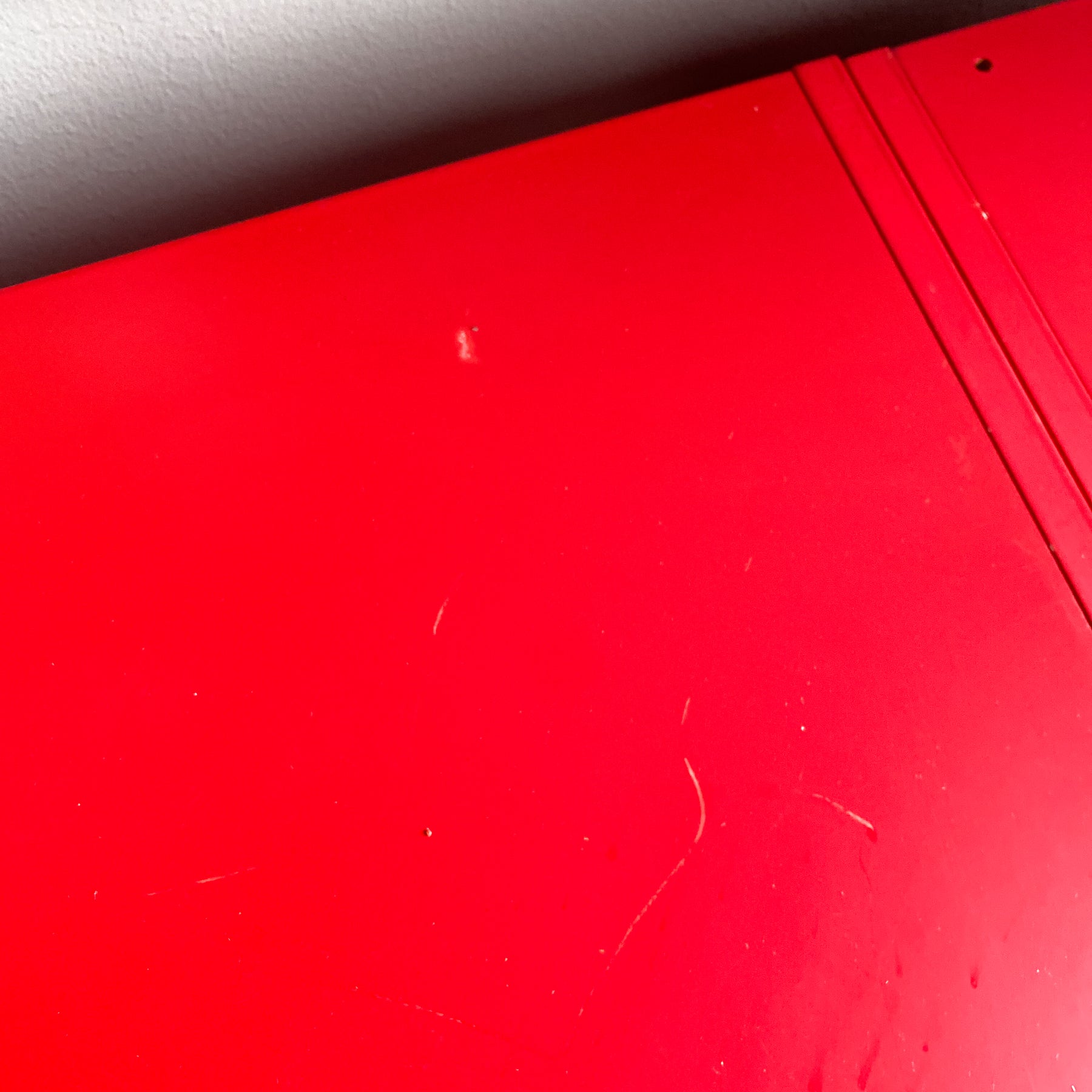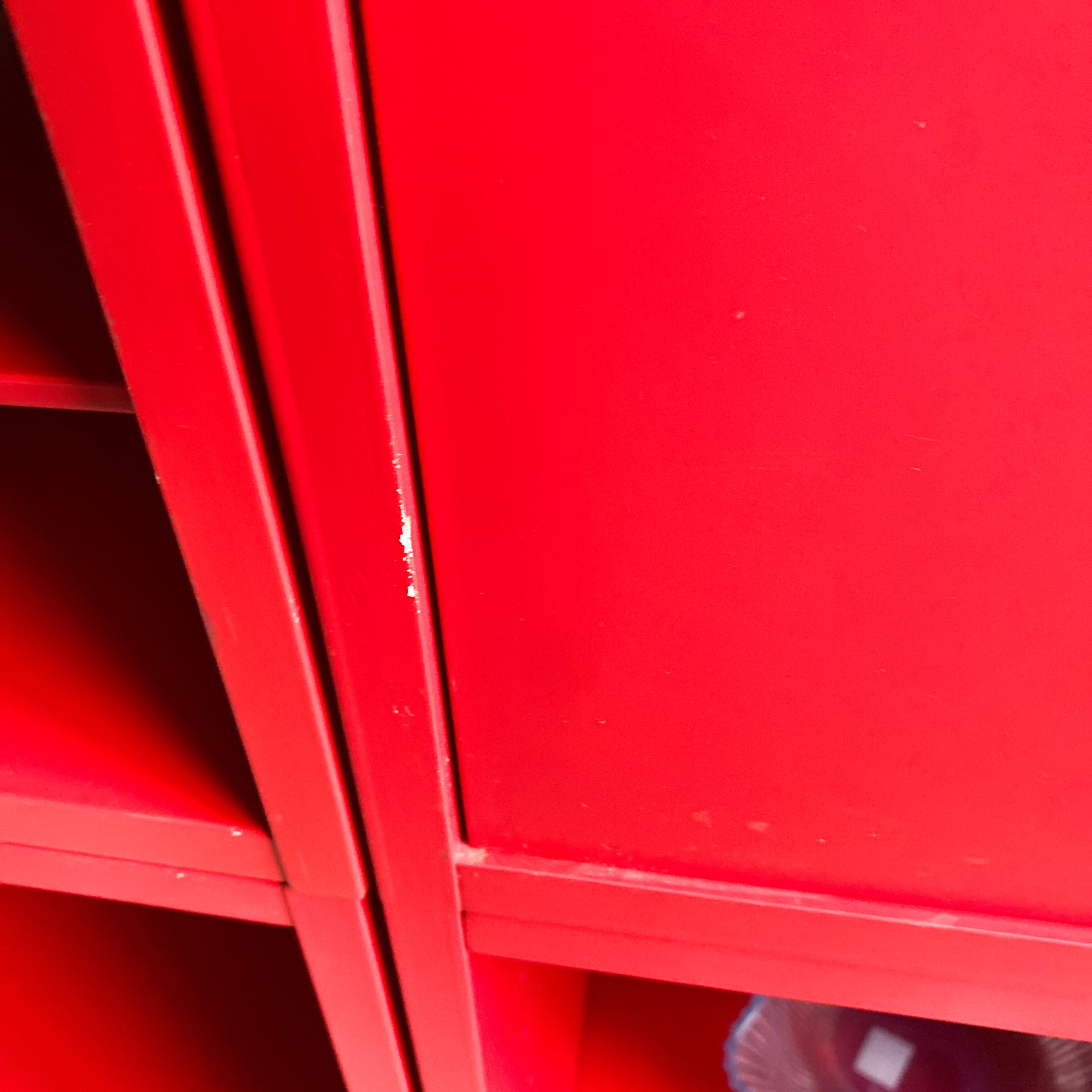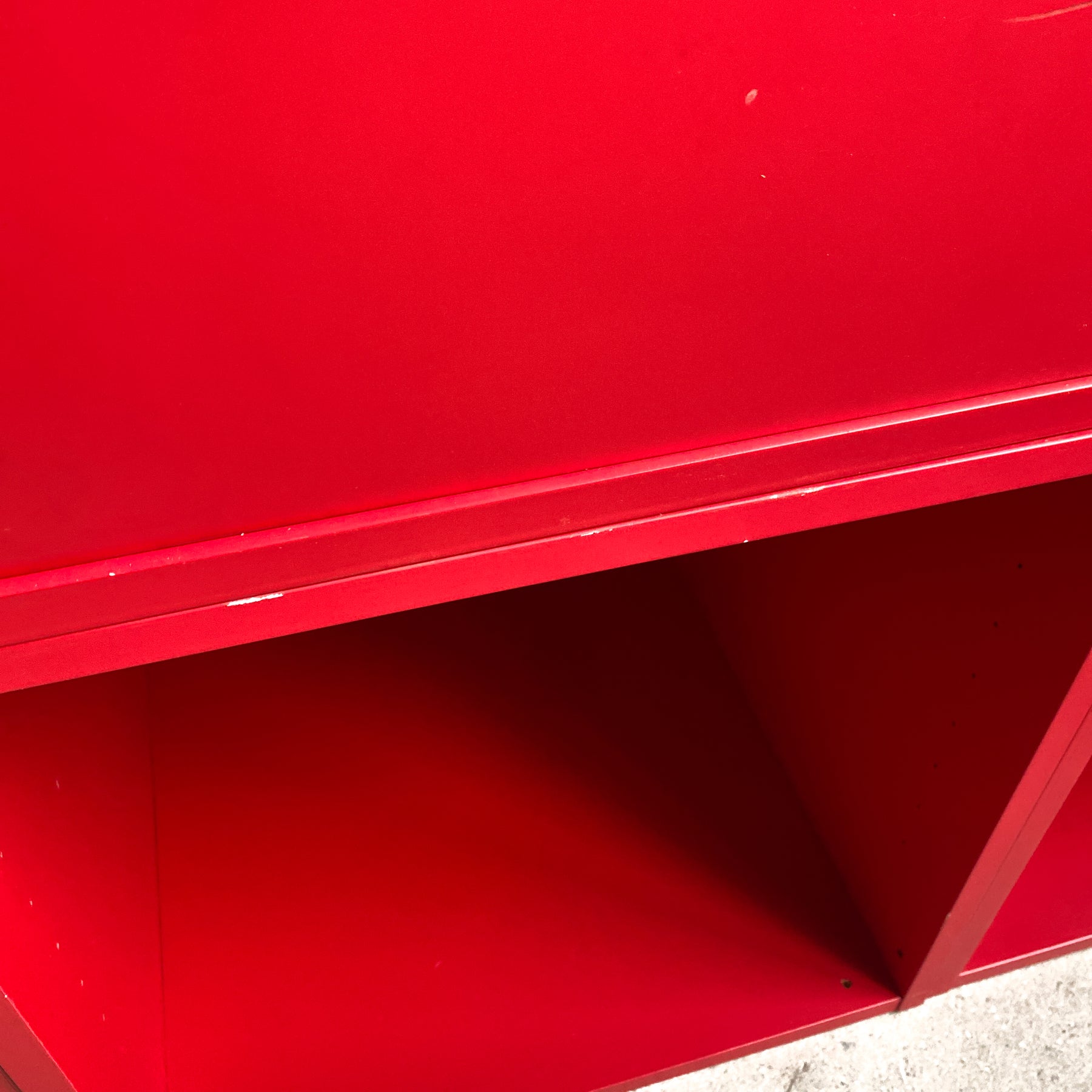 10 st röda byggbara kuber ur MER serien, design Gillis Lundgren för IKEA 1970. Knoppar i mässing.