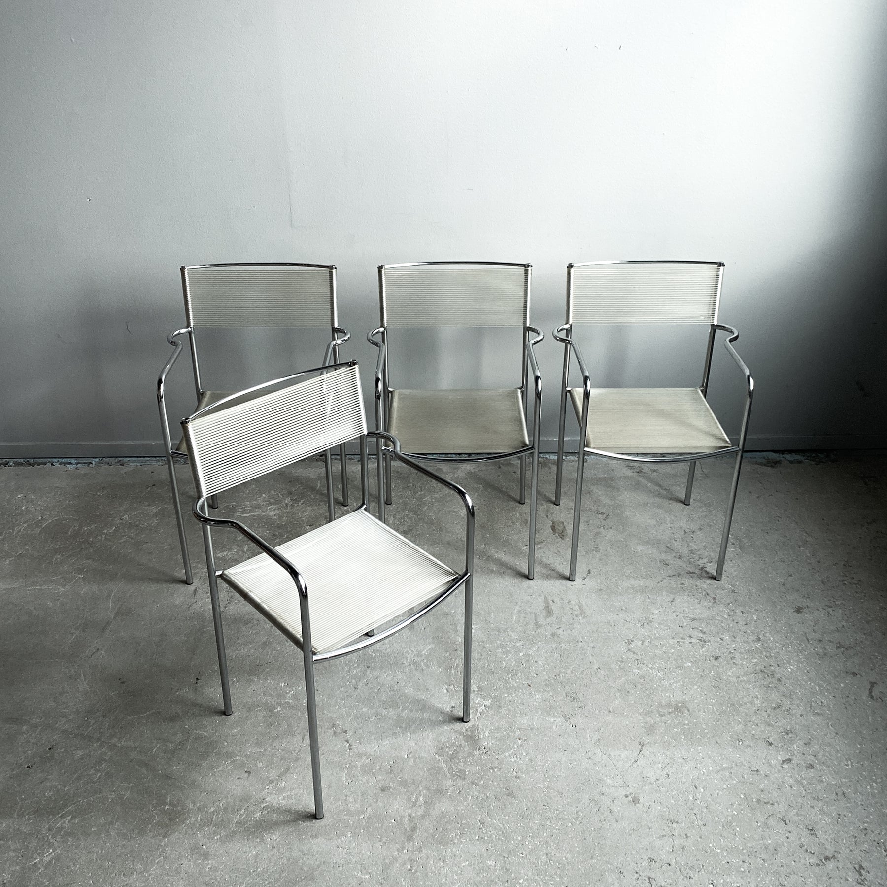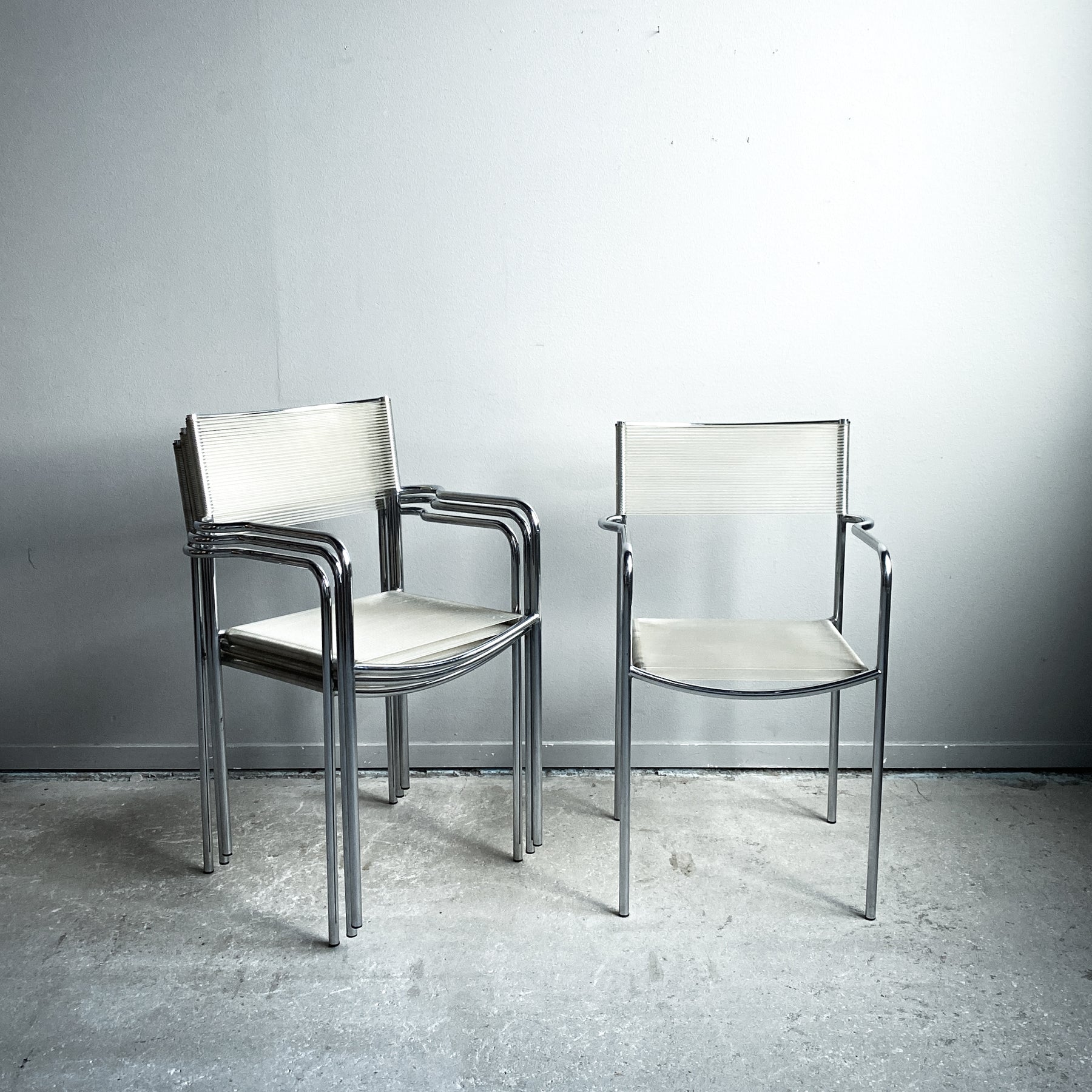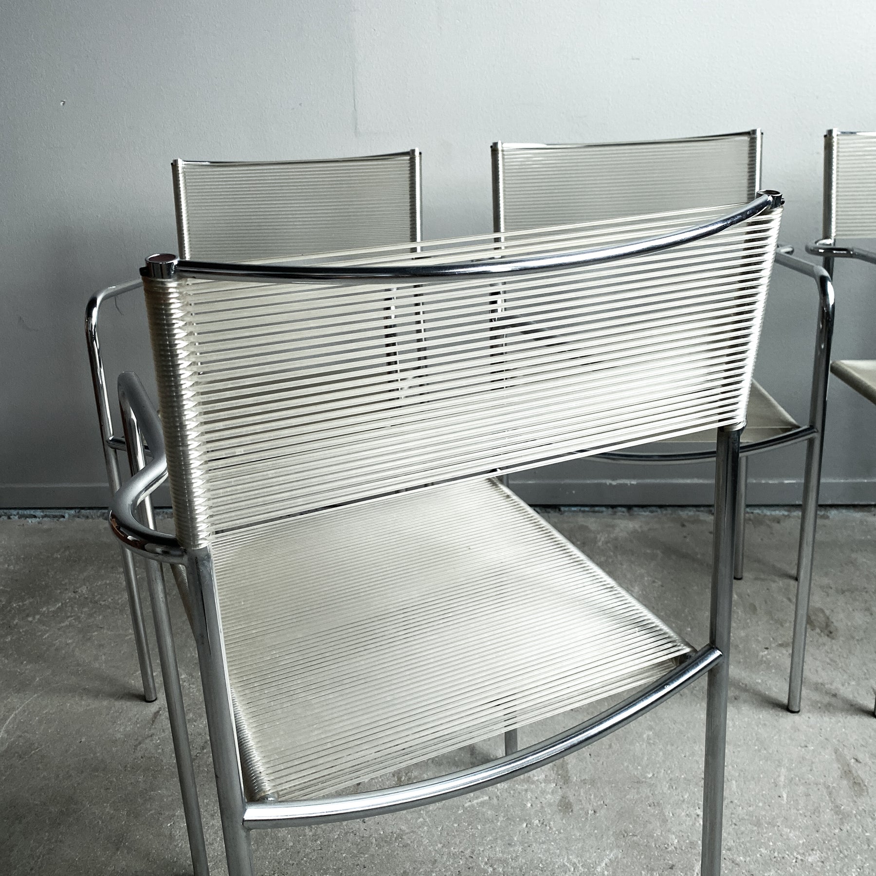 4 karmstolar Spaghetti armchair design Giandomenico Belotti för Alias, Italien 1979. Stomme i krom och sits och rygg i runda virade PVC band. Stapelbara.