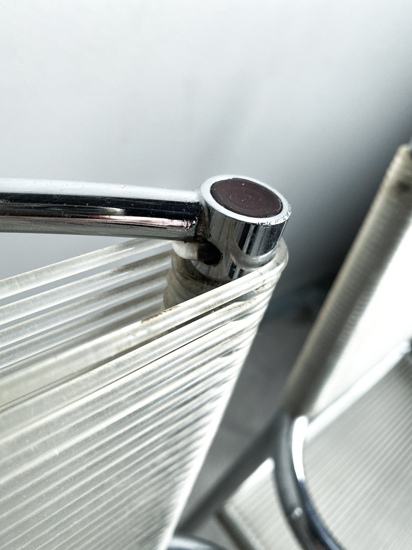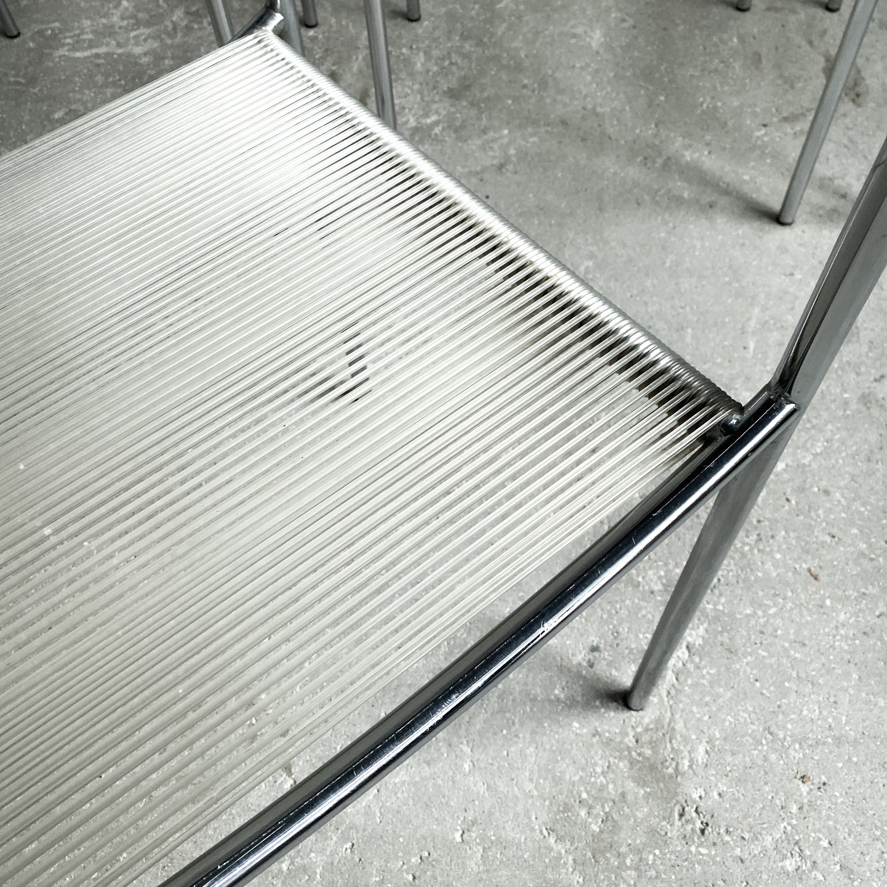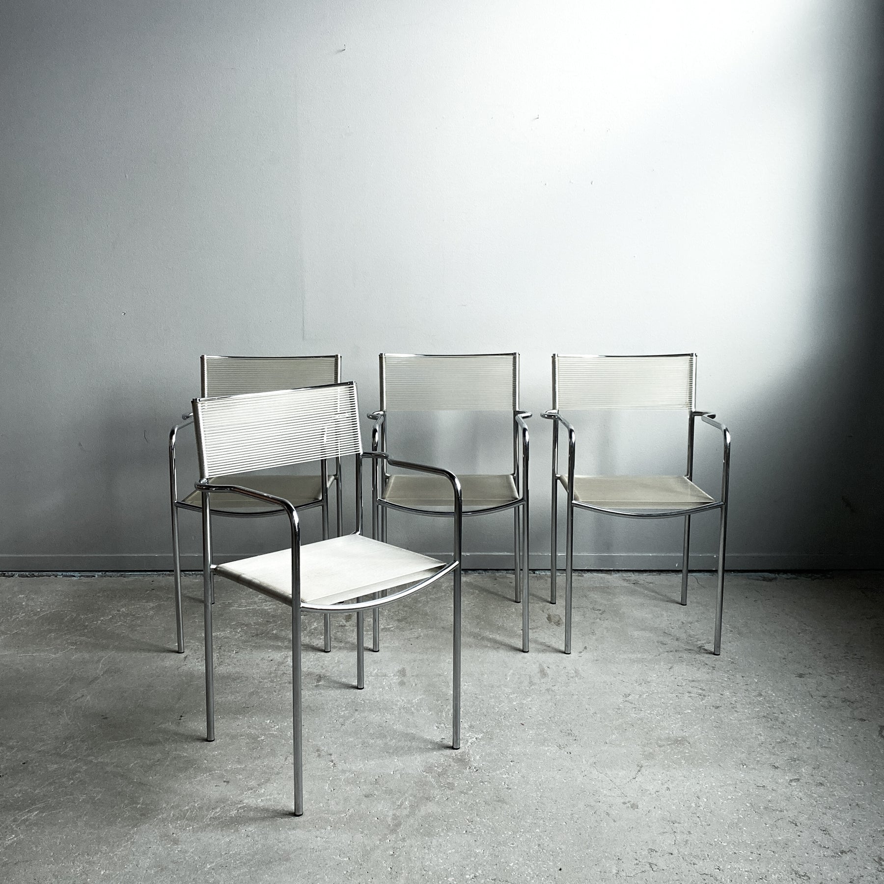 4 karmstolar Spaghetti armchair design Giandomenico Belotti för Alias, Italien 1979. Stomme i krom och sits och rygg i runda virade PVC band. Stapelbara.