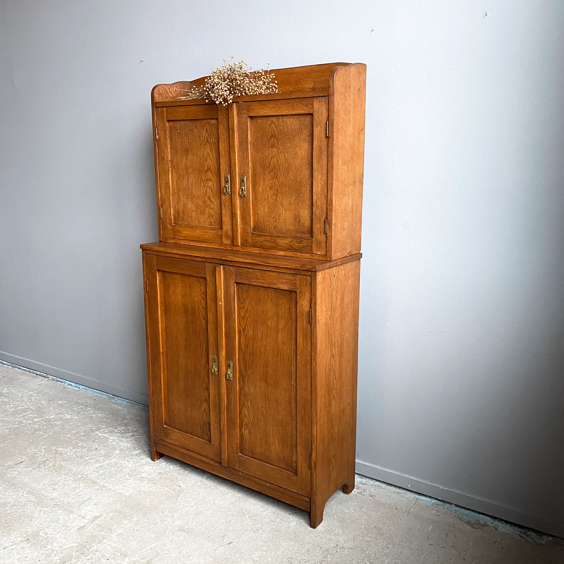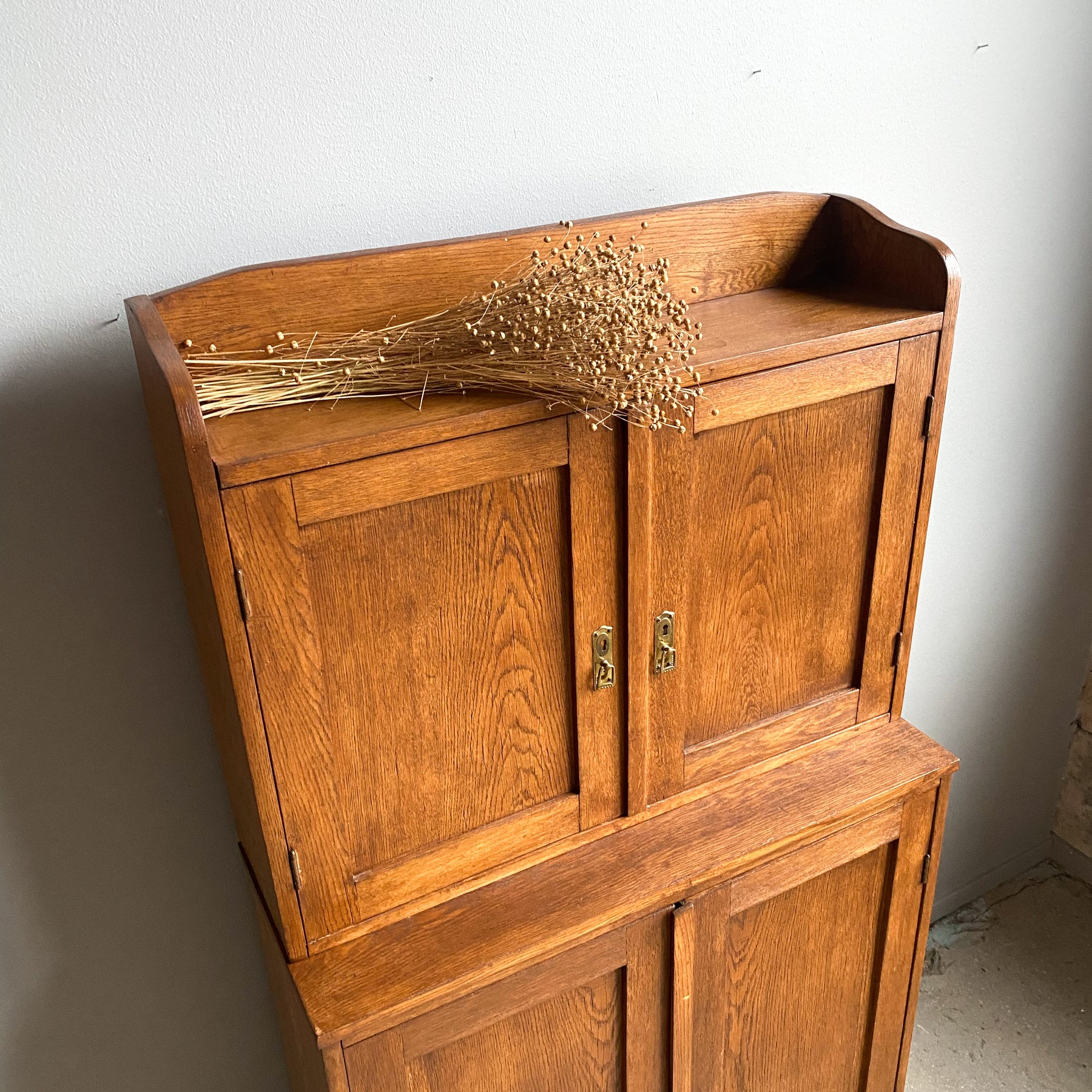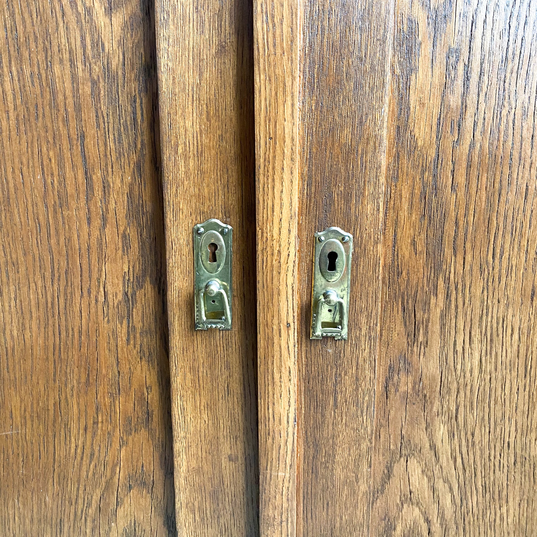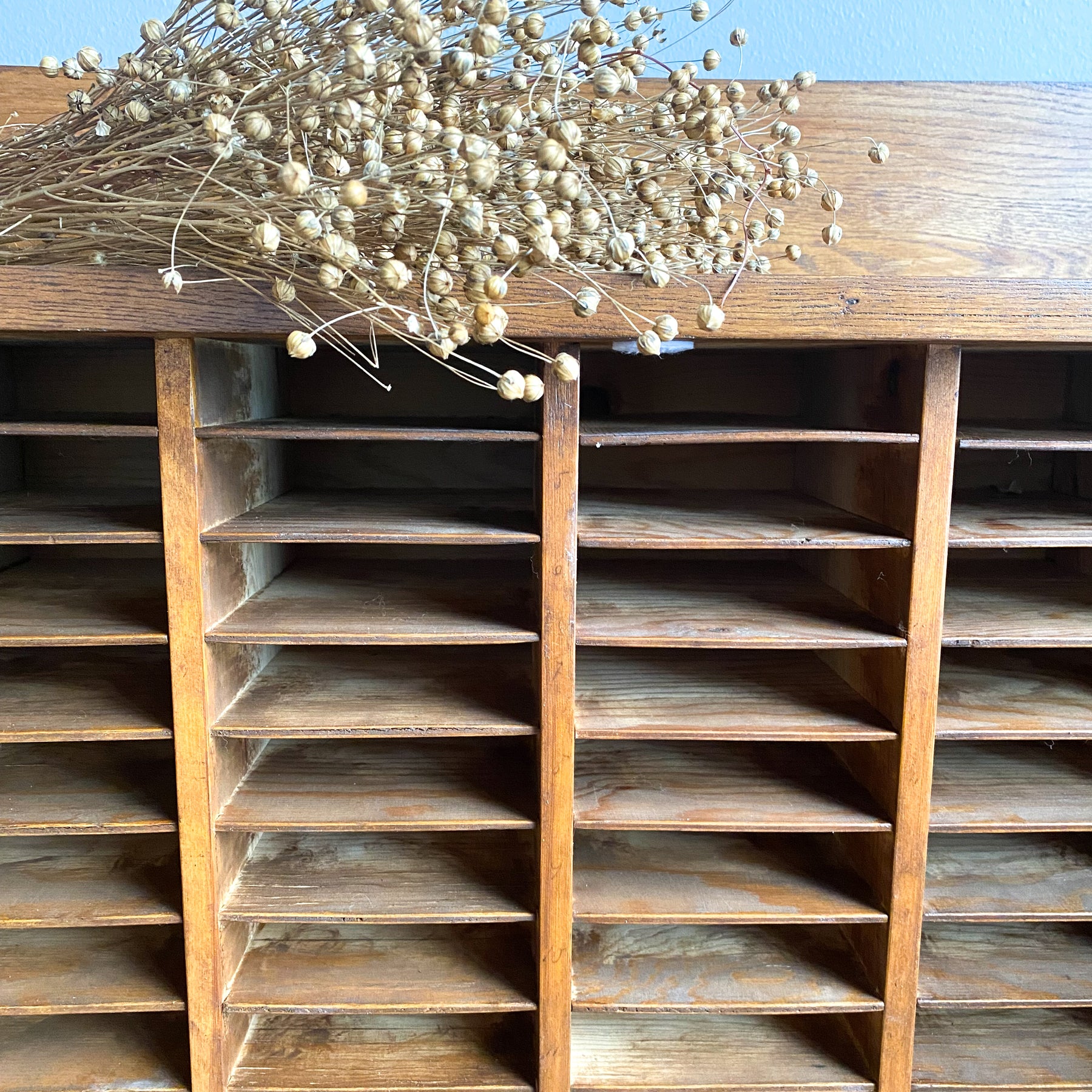 Fantastiskt arkivskåp i ek, tidigt 1900-tal i Jugendstil. Skåpet har stått på en prästgård och i översta skåpet låg alla predikningar för hela året på handskrivna lappar i varje fack. Nederdelen har 3 lådor med fack och flyttbara hyllplan. Skåpet är 2 delat.
