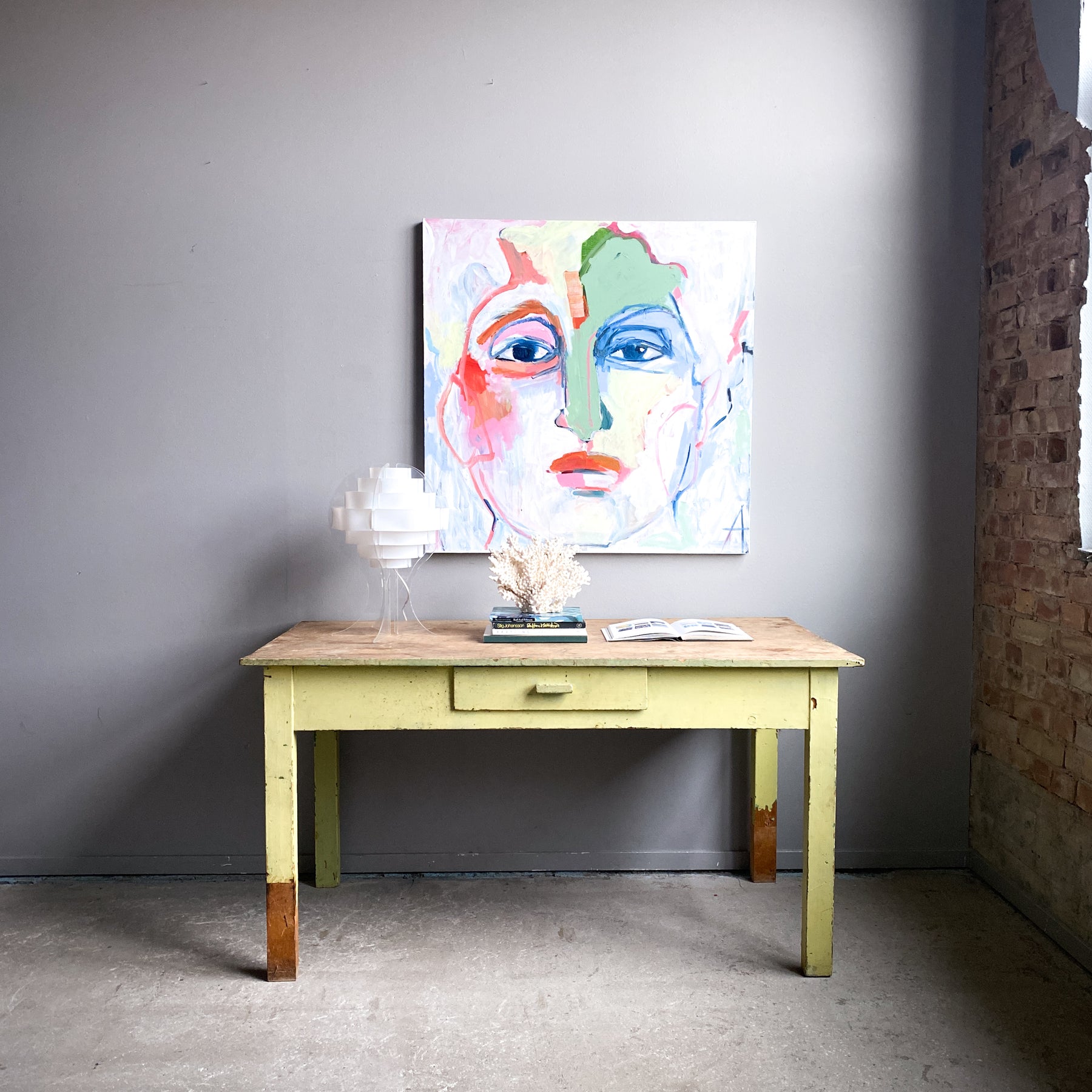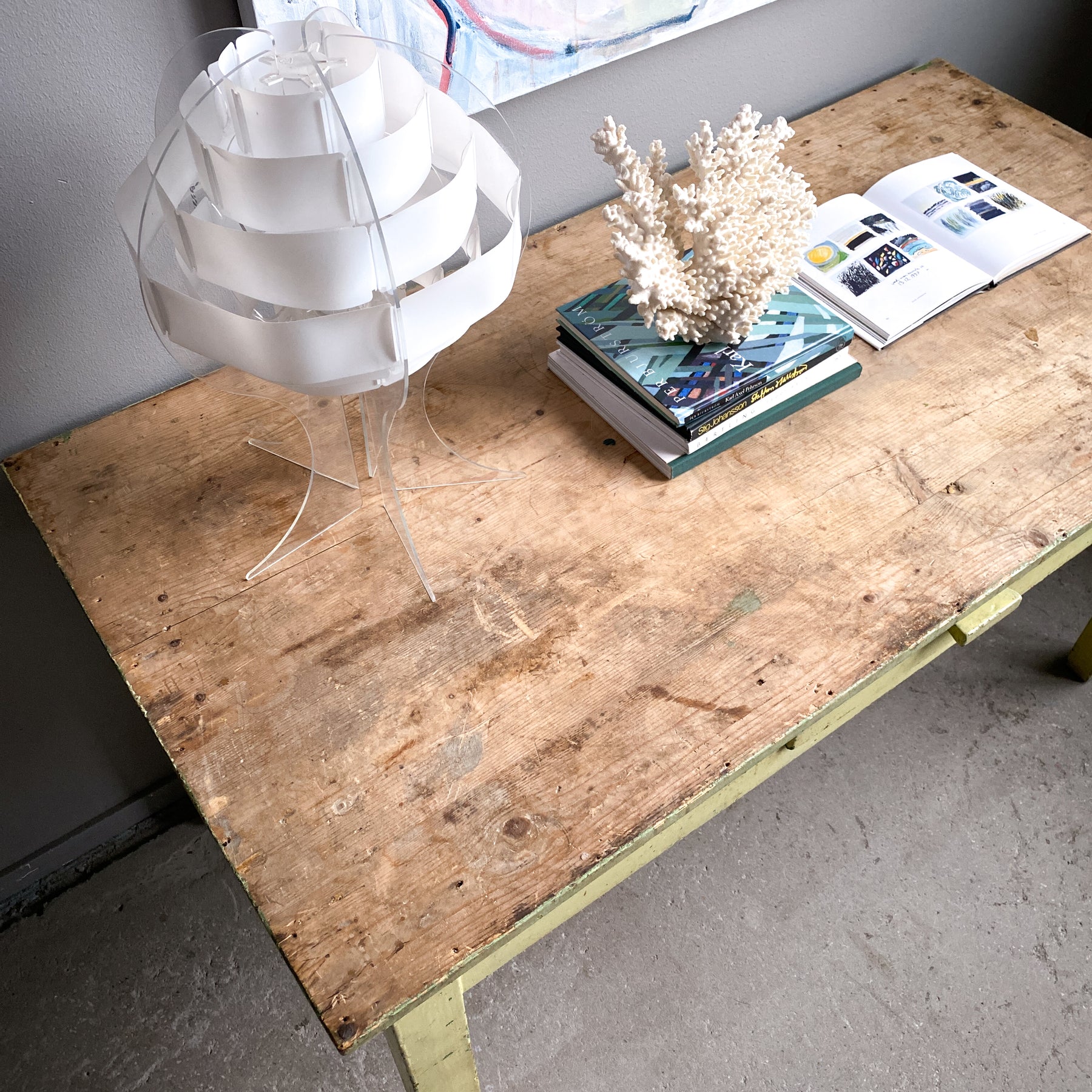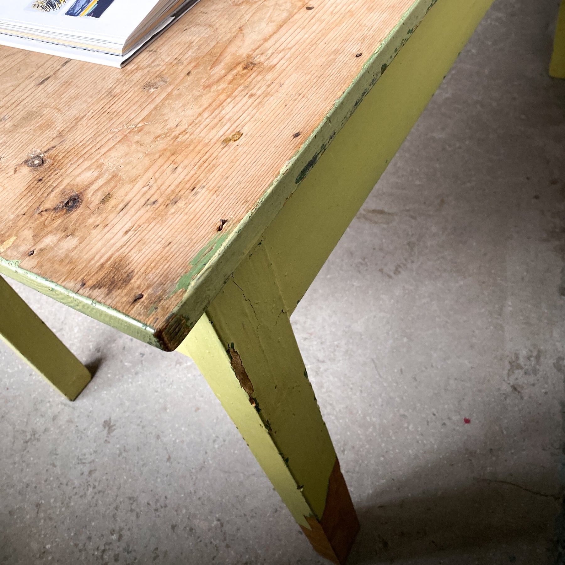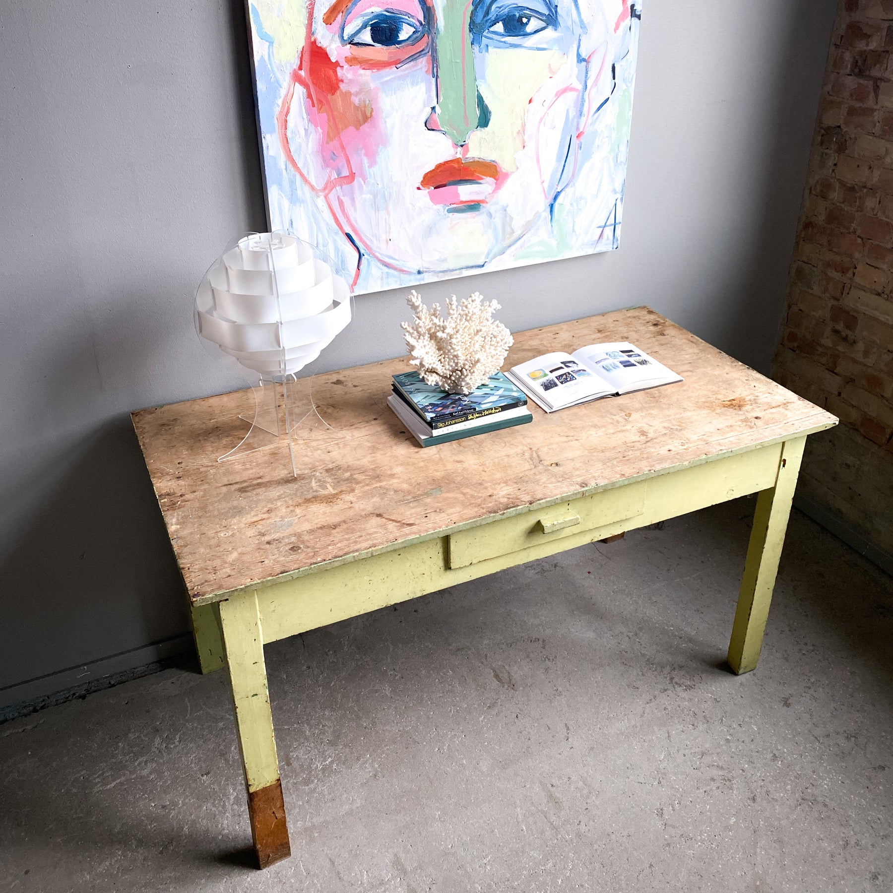 Avlastningsbord eller sidobord, allmoge 1800-tal. Ljusgrönmålad benställning. Låda framtill.