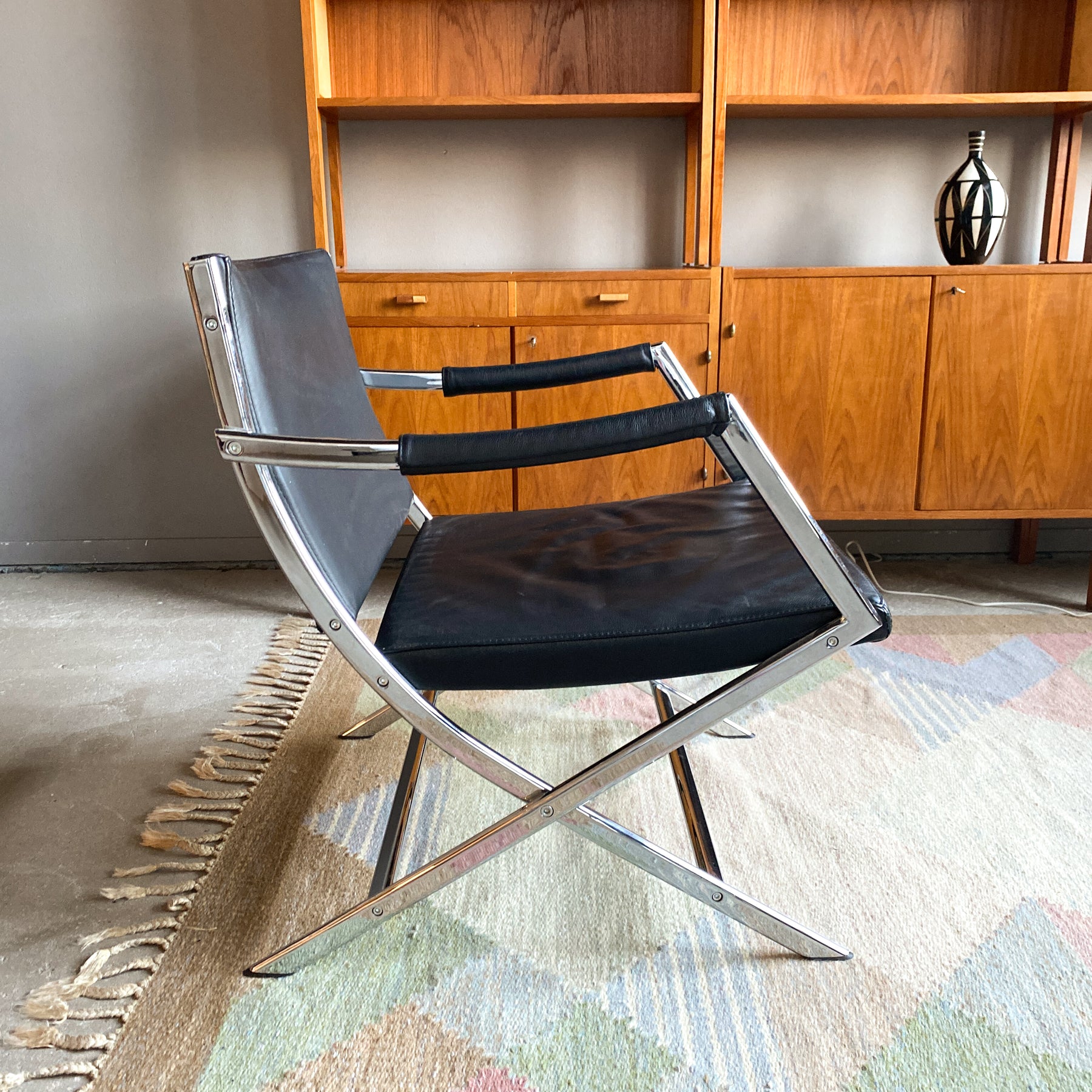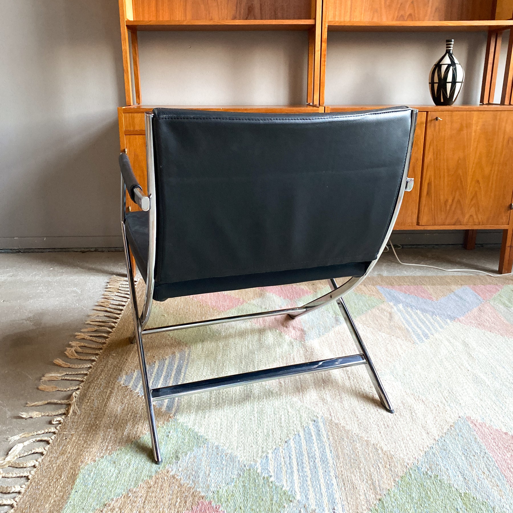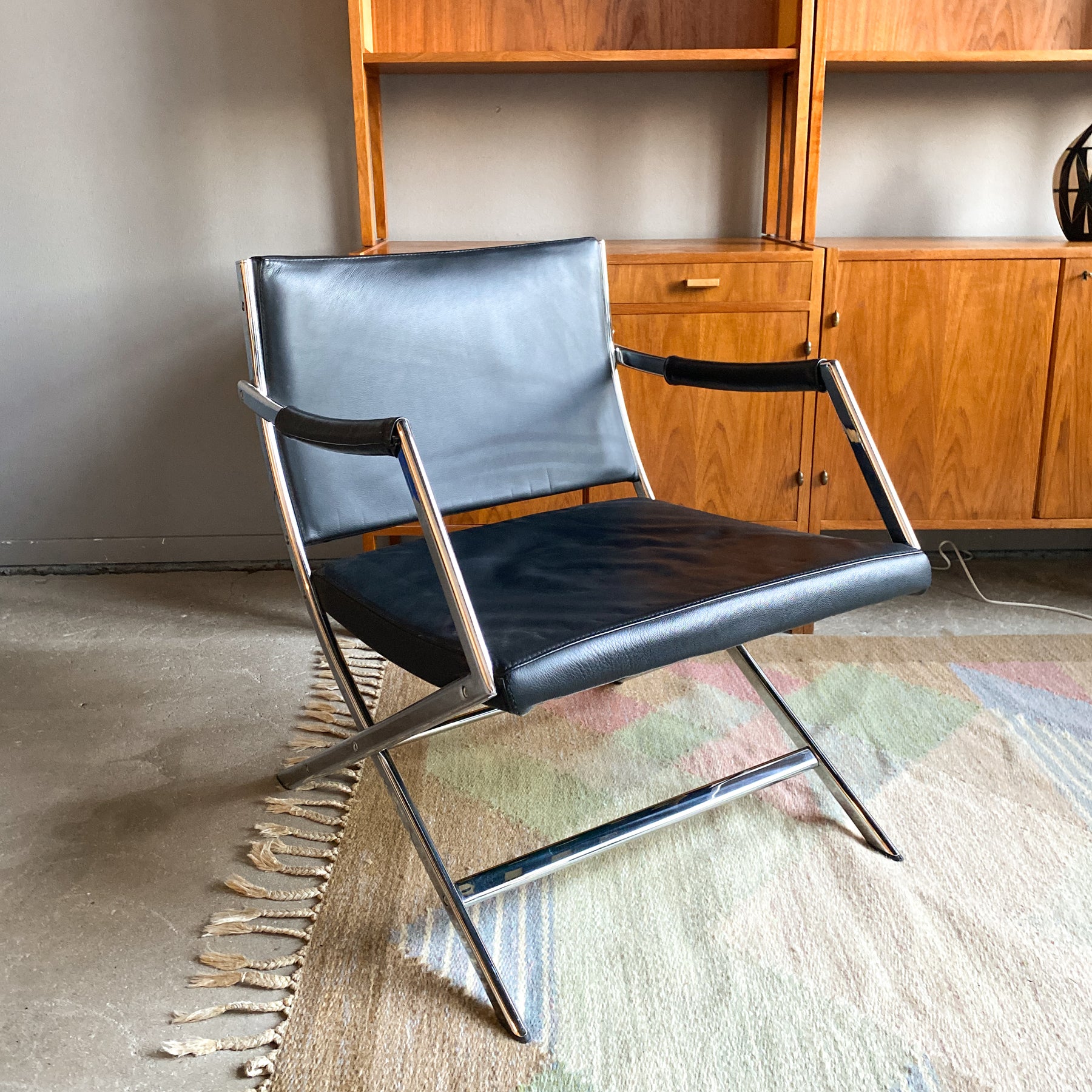Fåtölj i krom och svart skinn, 80/90-tal.