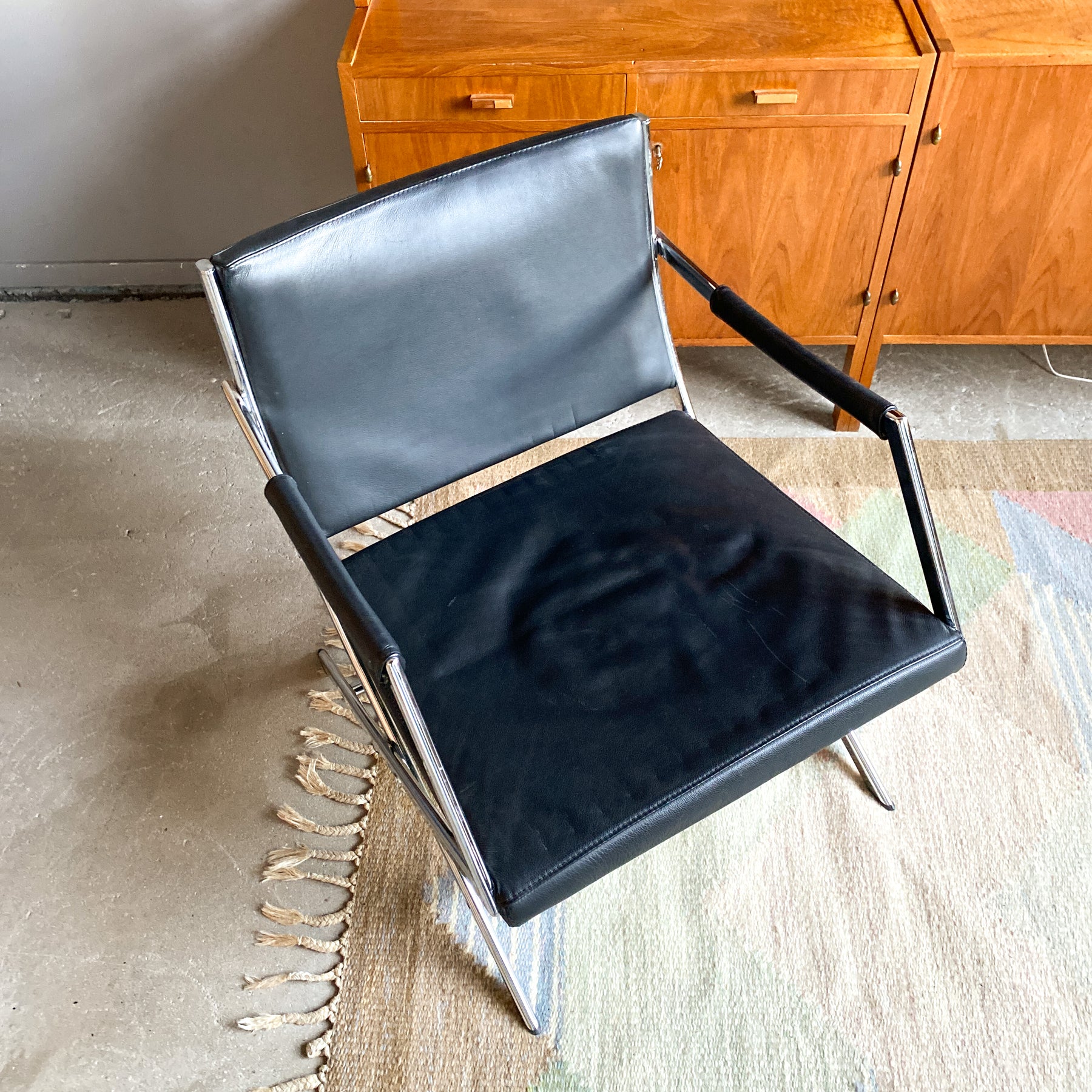 Fåtölj i krom och skinn 80/90-tal