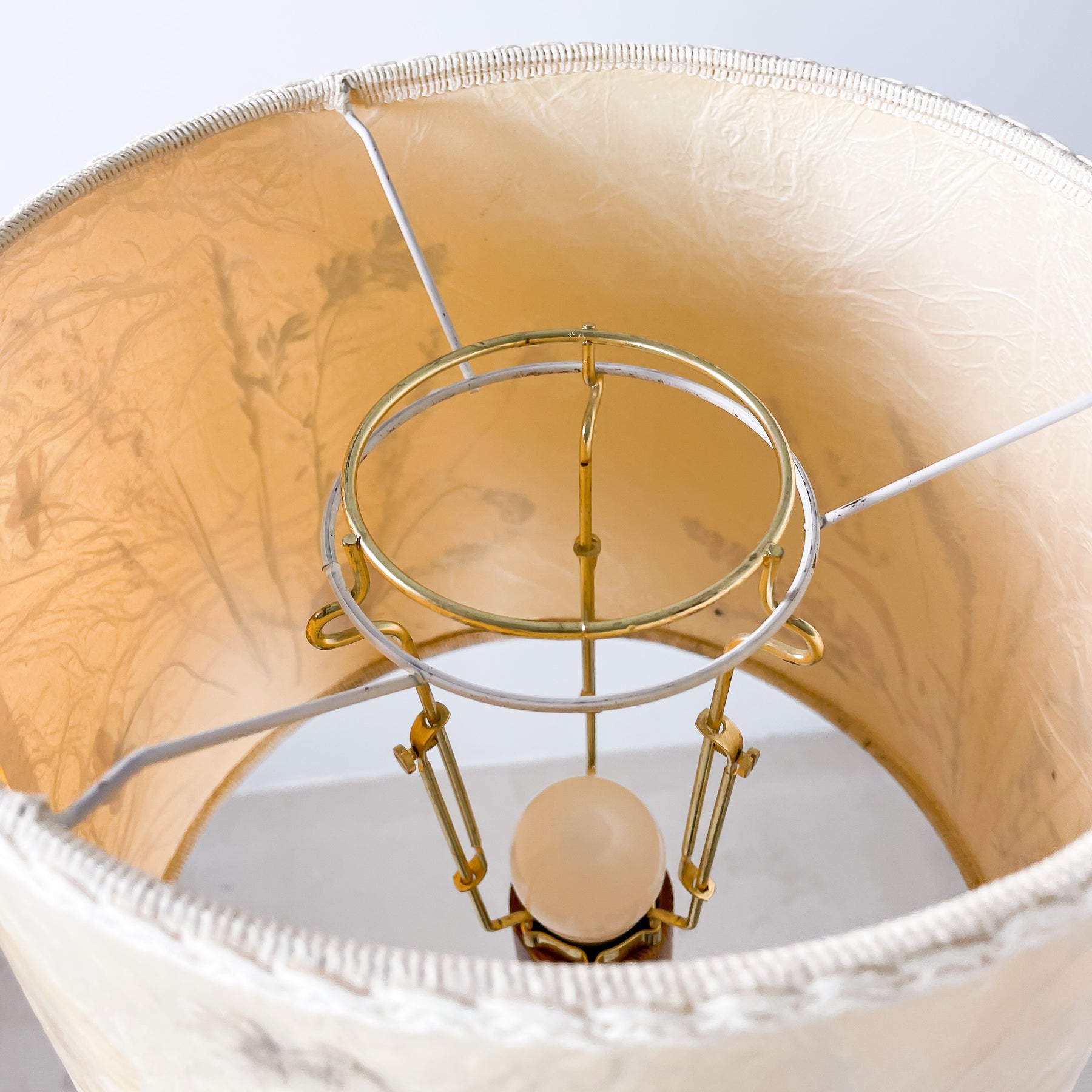 Skick: Spår av liv i form av lite skav i träet. Skärmen är inte original och sätts fast med separat ställning som fästs med glödlampan.