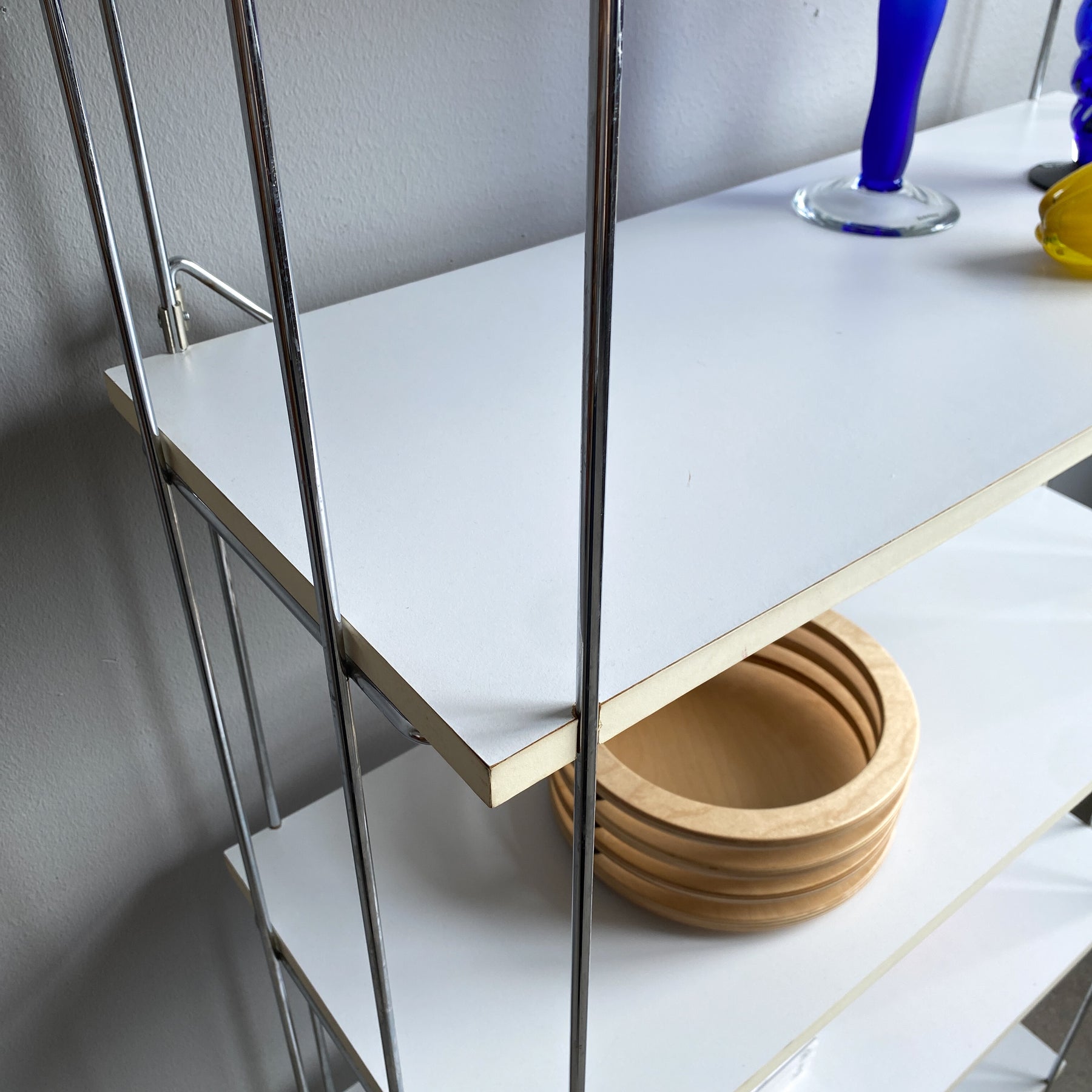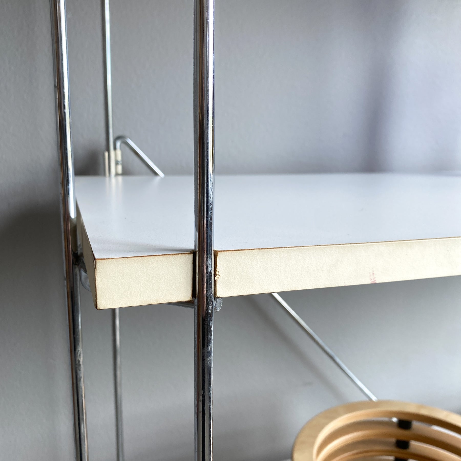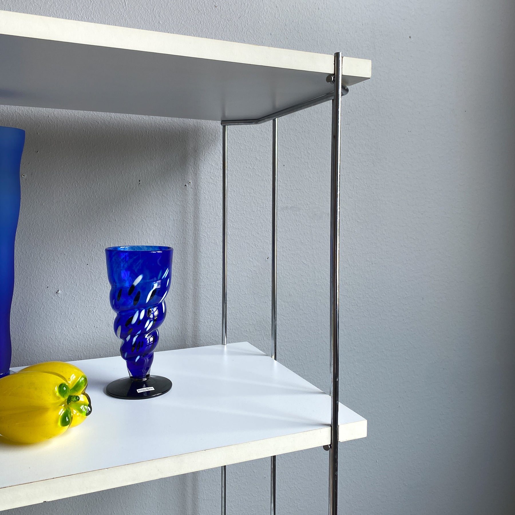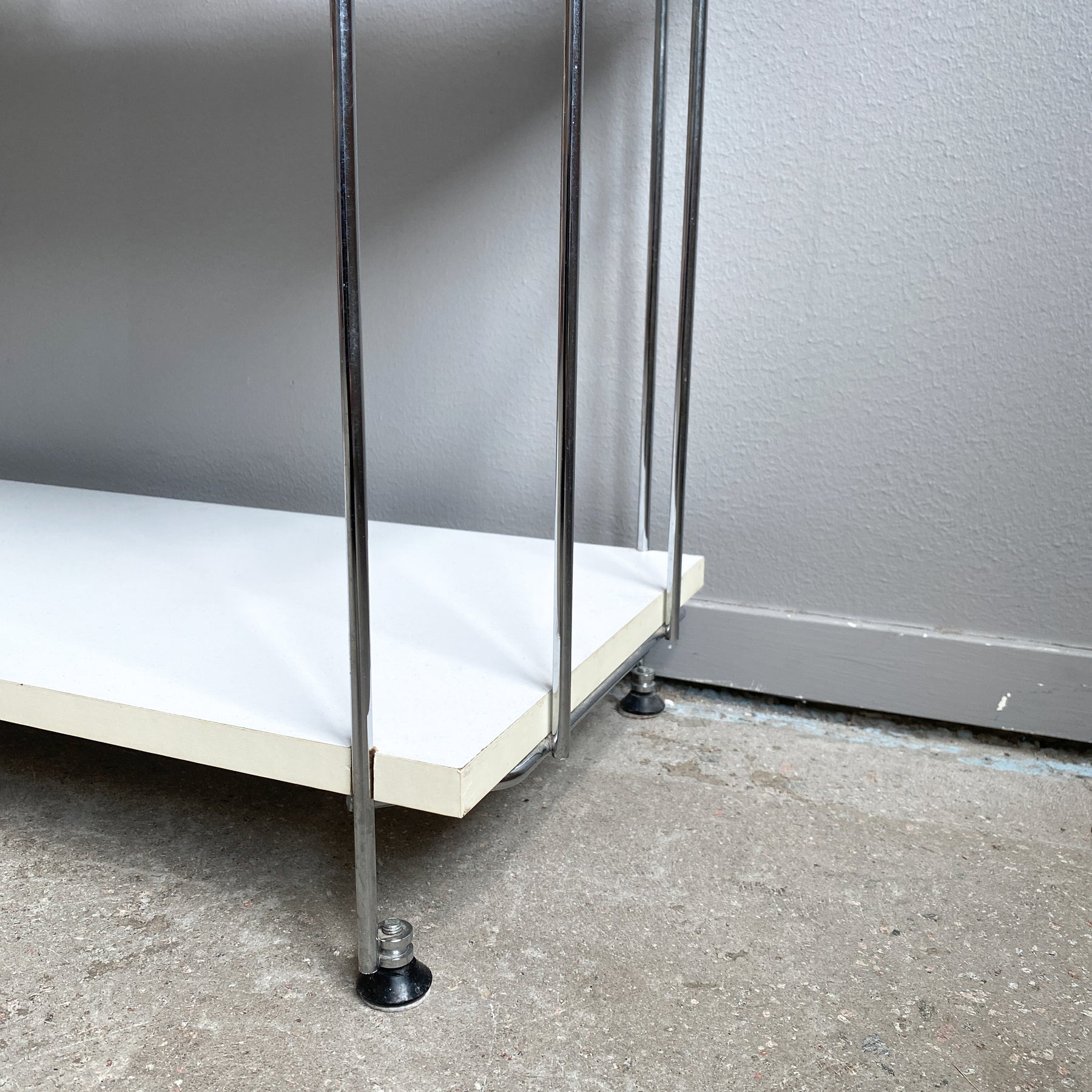 Hylla i krom och vit laminat, design Rutger Andersson, 80-tal.