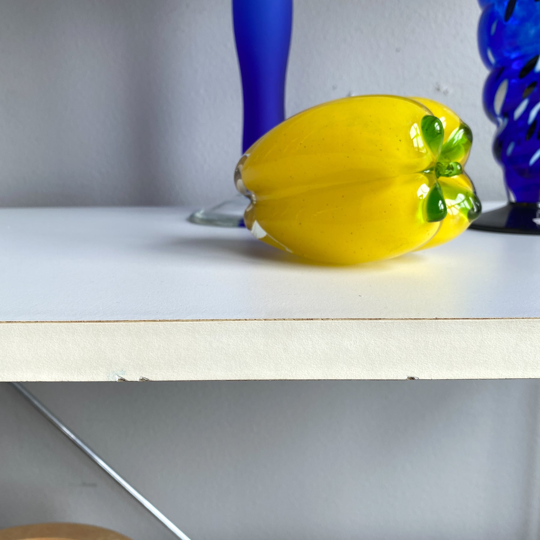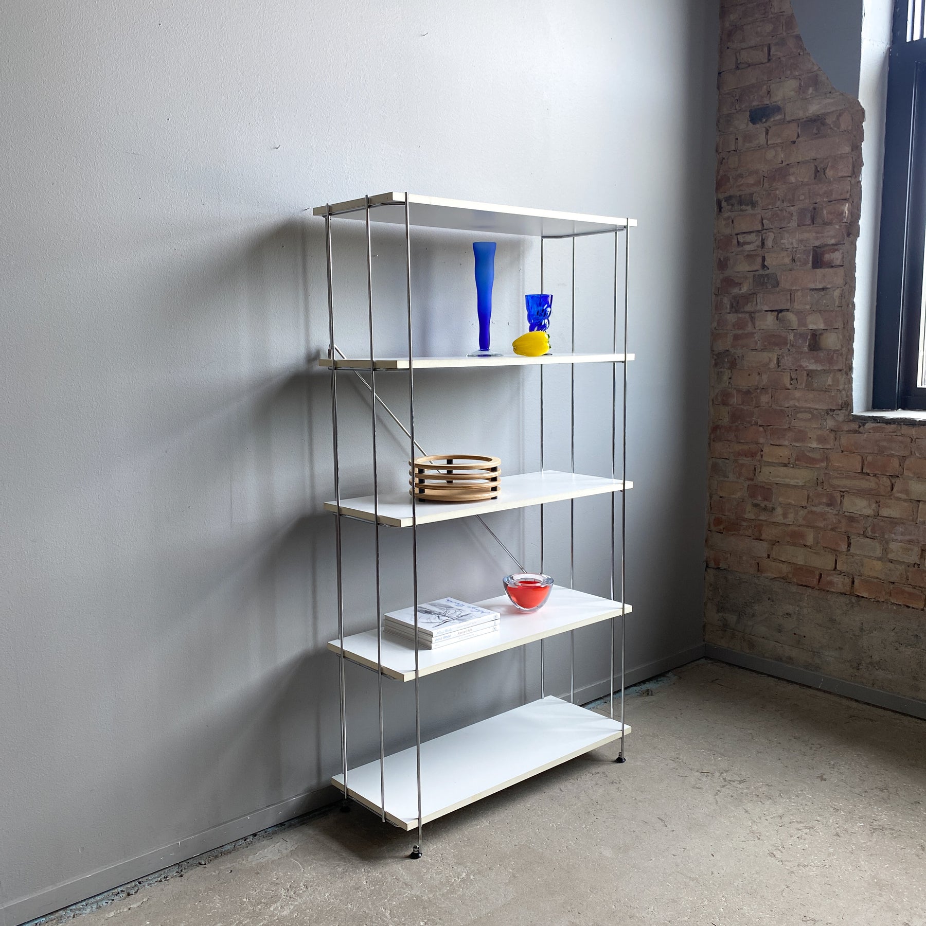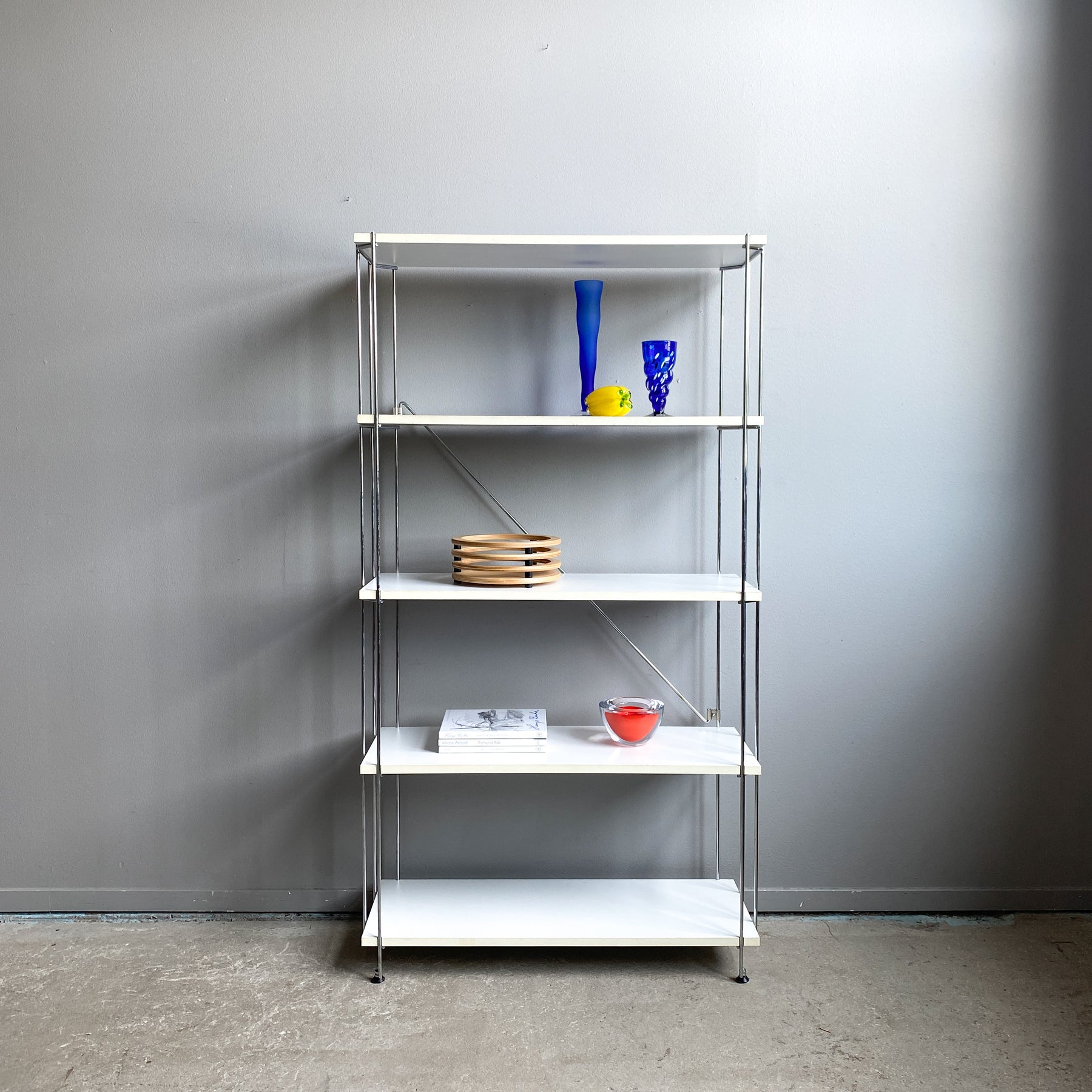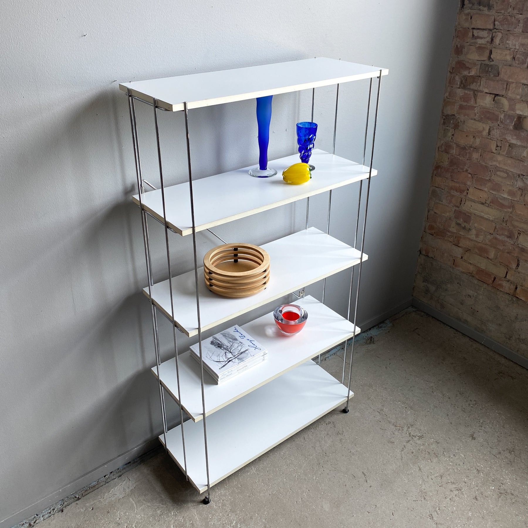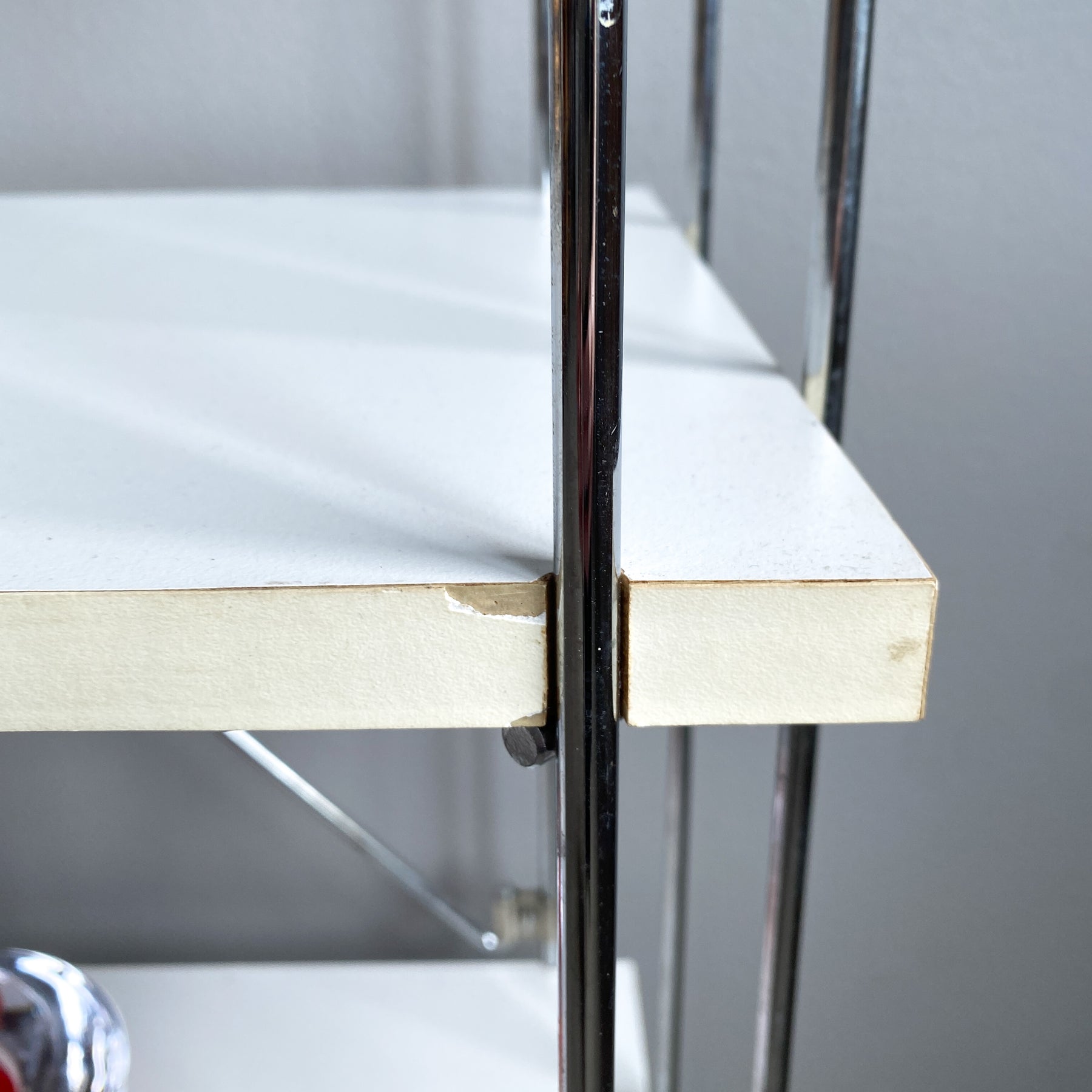 Hylla i krom och vit laminat, design Rutger Andersson, 80-tal.