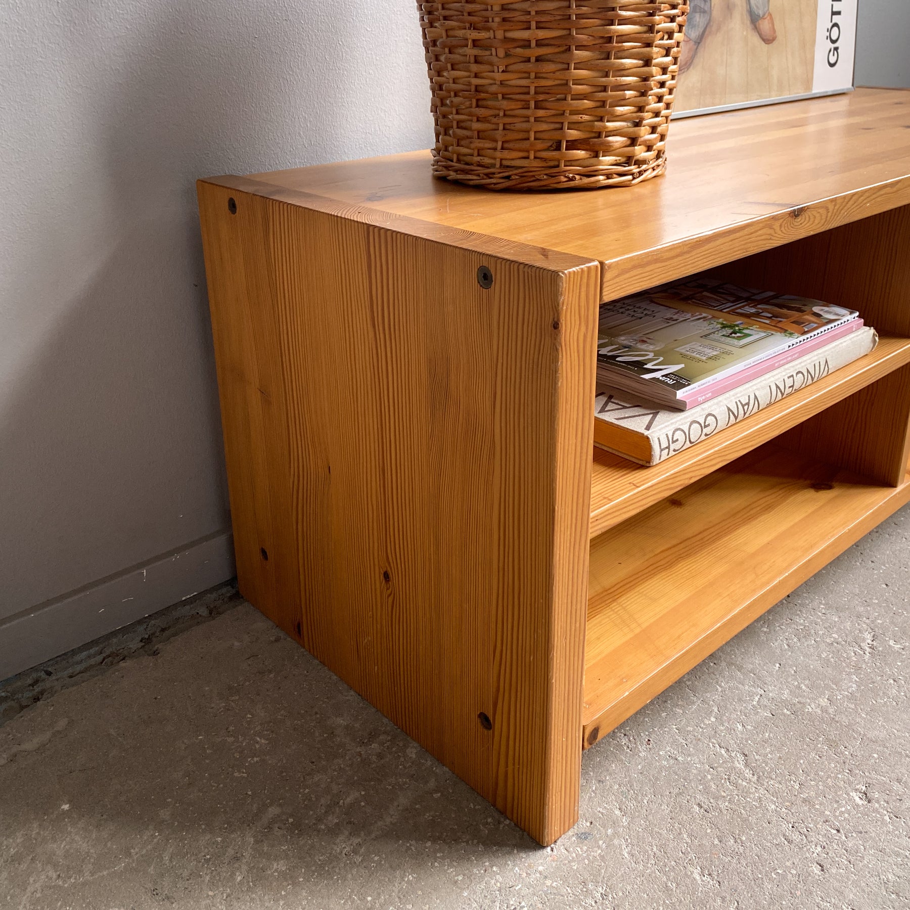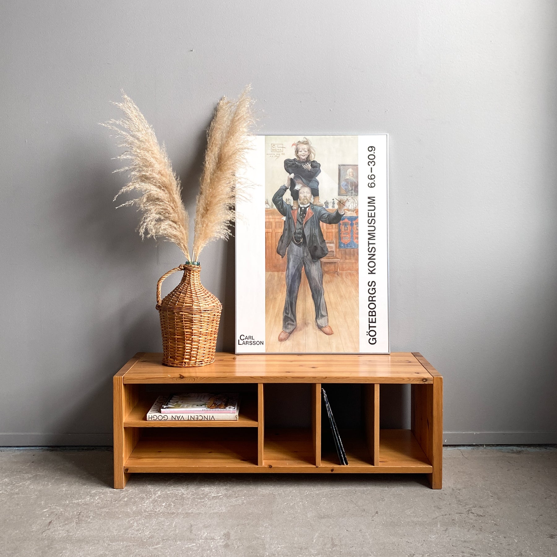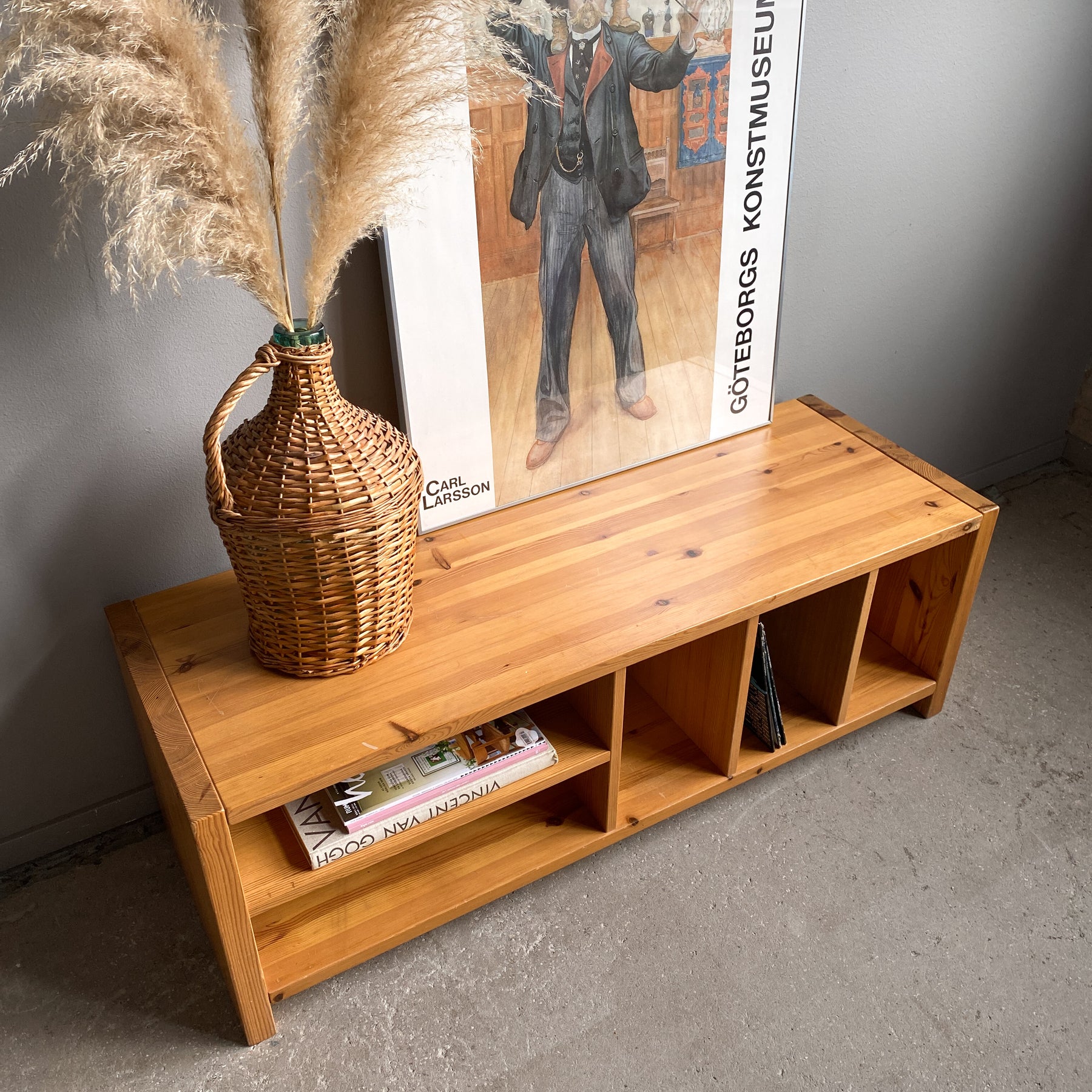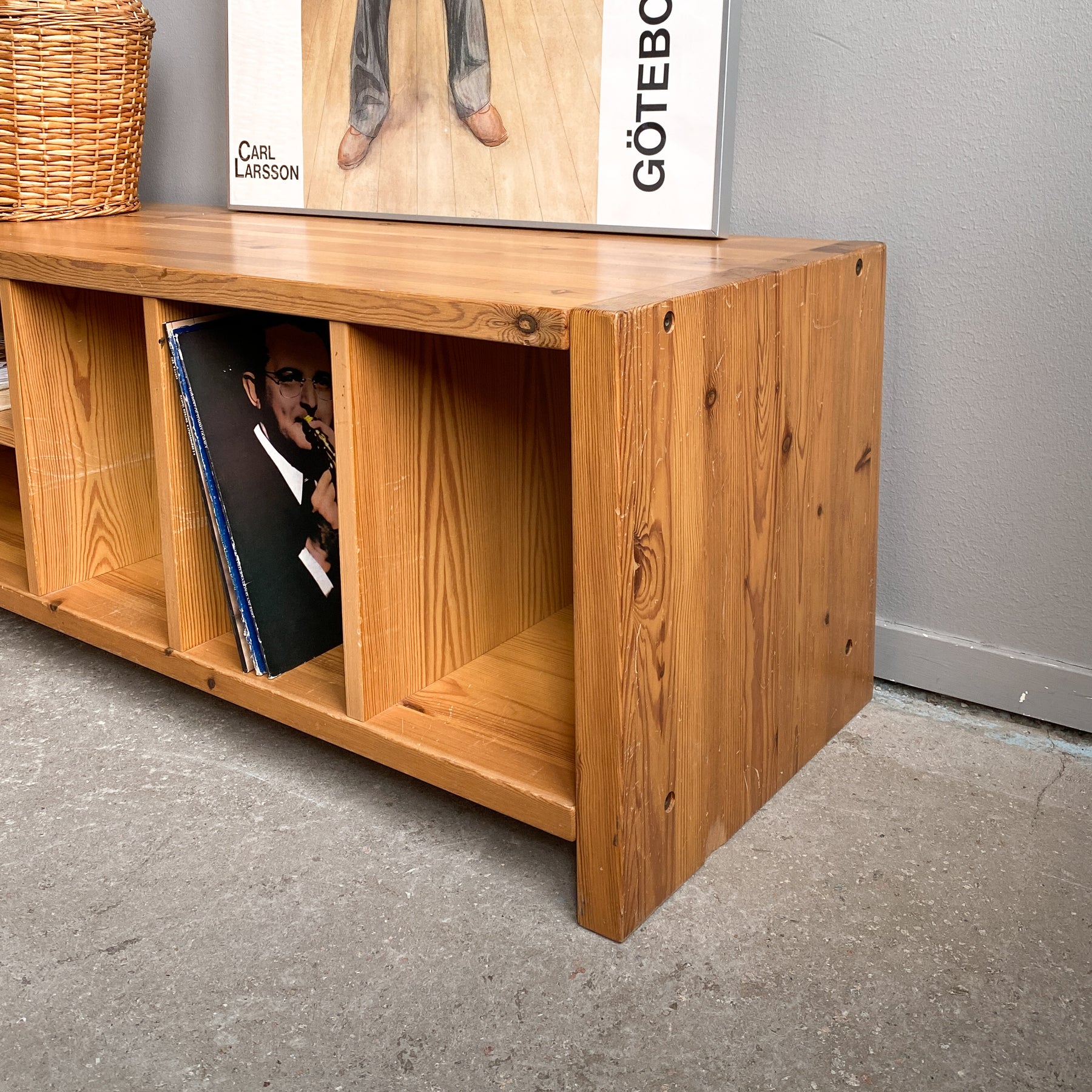 Lägre sideboard/mediabänk furu från NC Möbler, 70-tal. Fasta hyllplan.