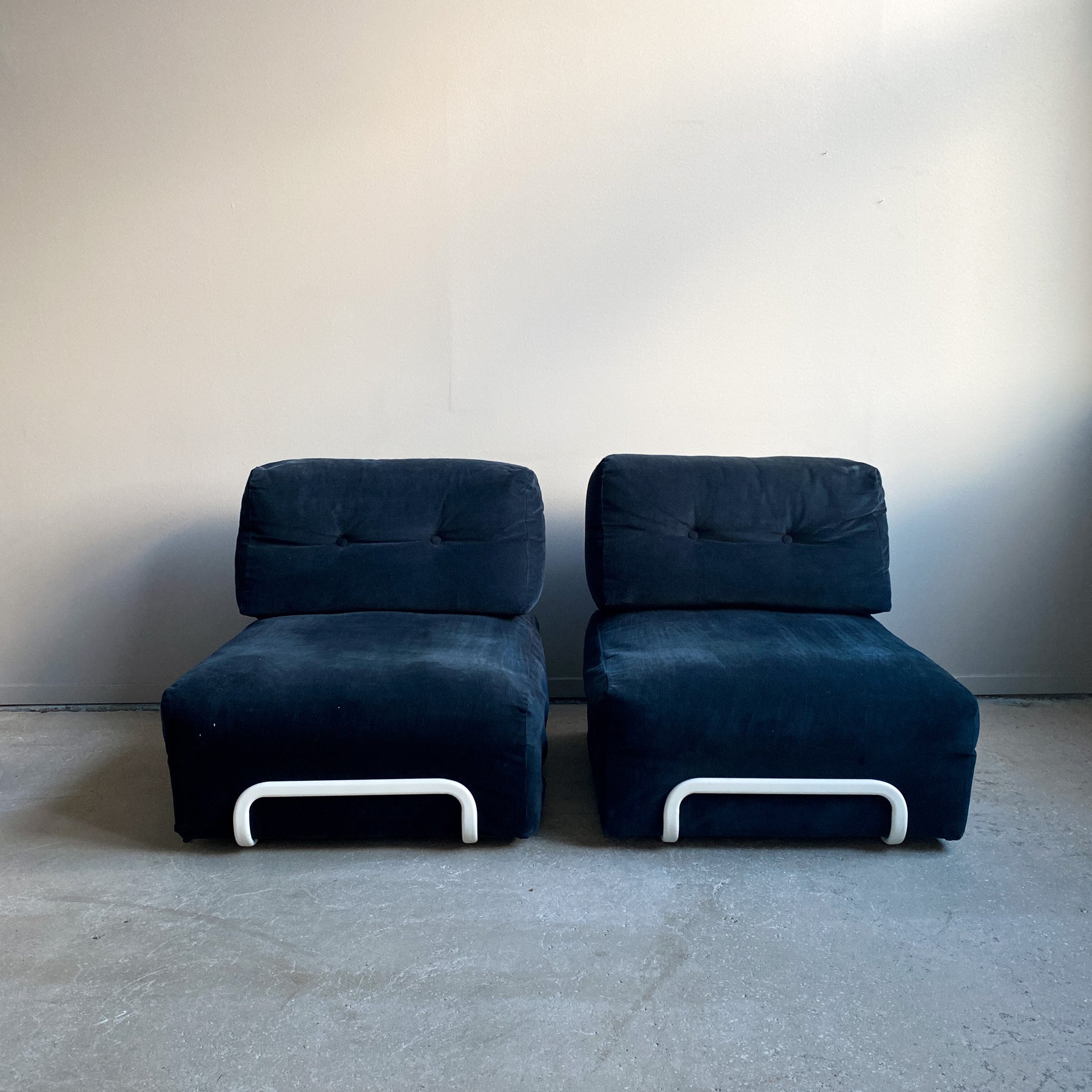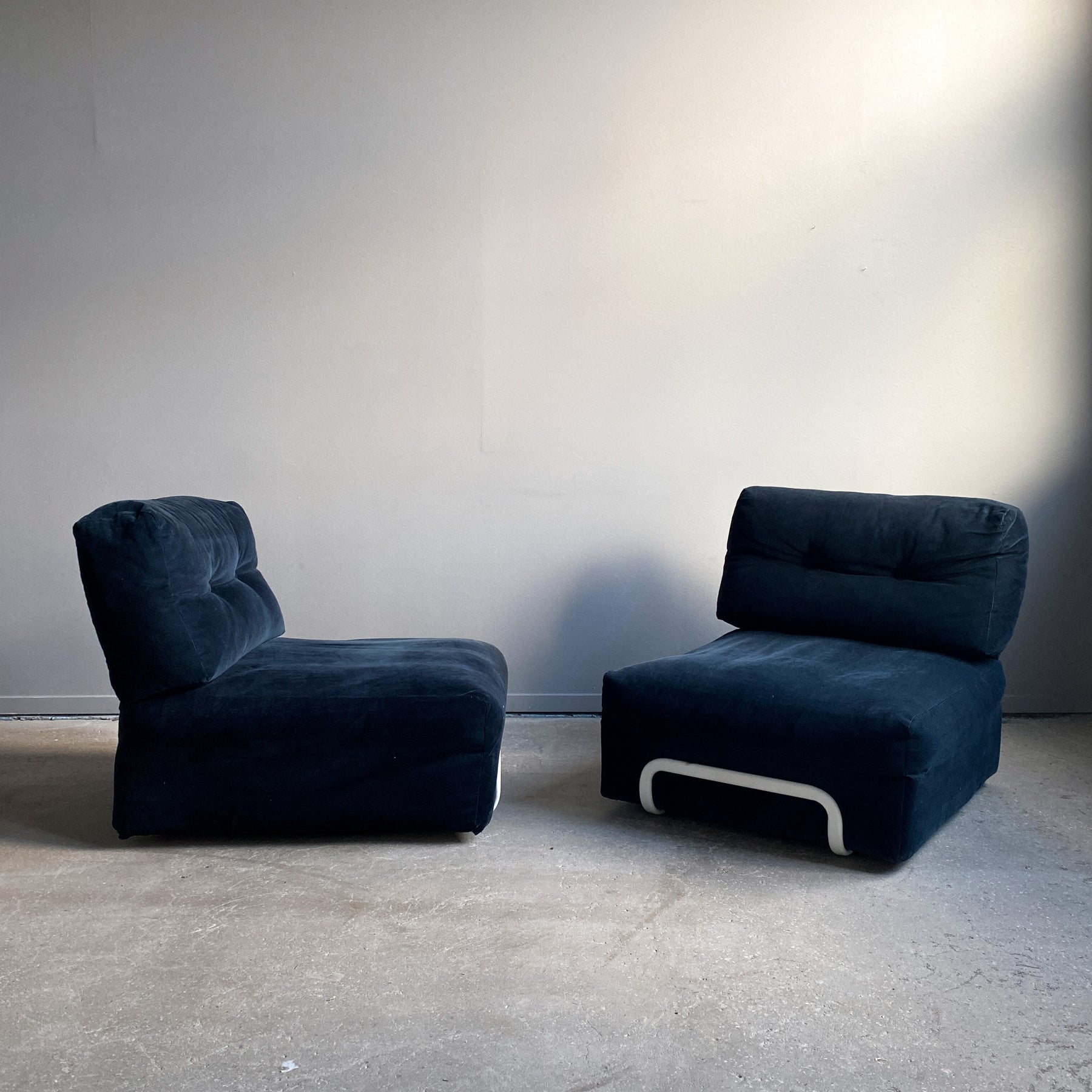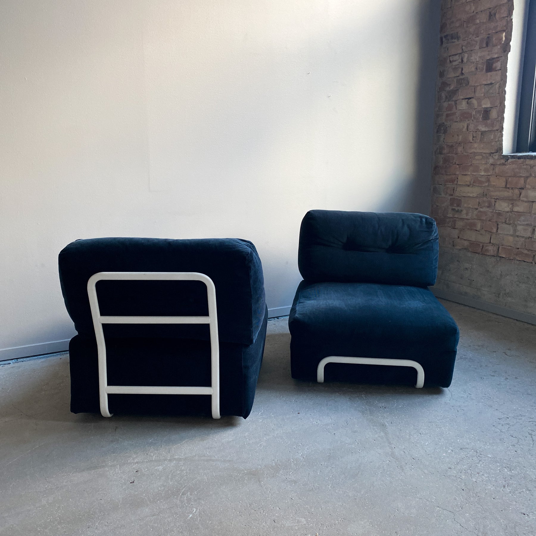 Sektionsfåtöljen Rörberg design Ulf Quensel, IKEA 2009. Svart smalrandig manchester tyg. Stomme i vitlackerad stål.