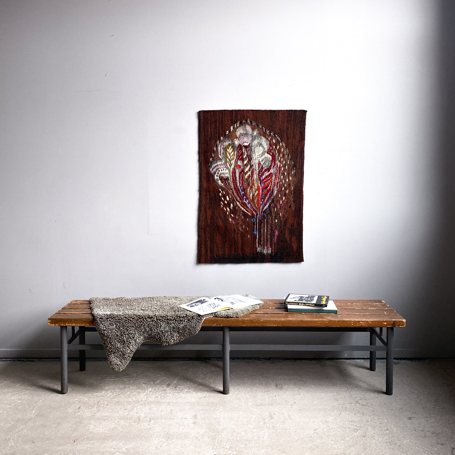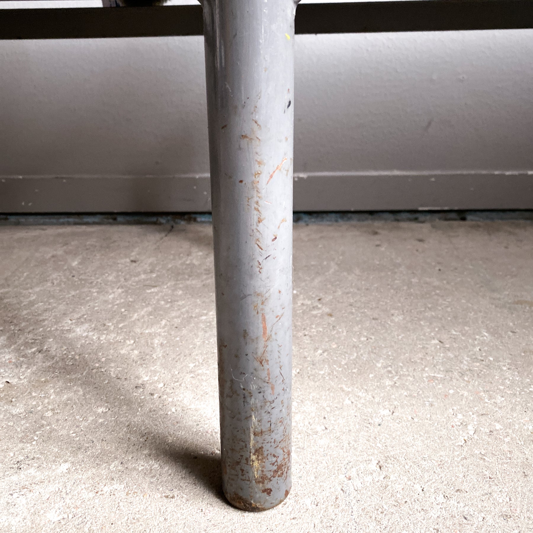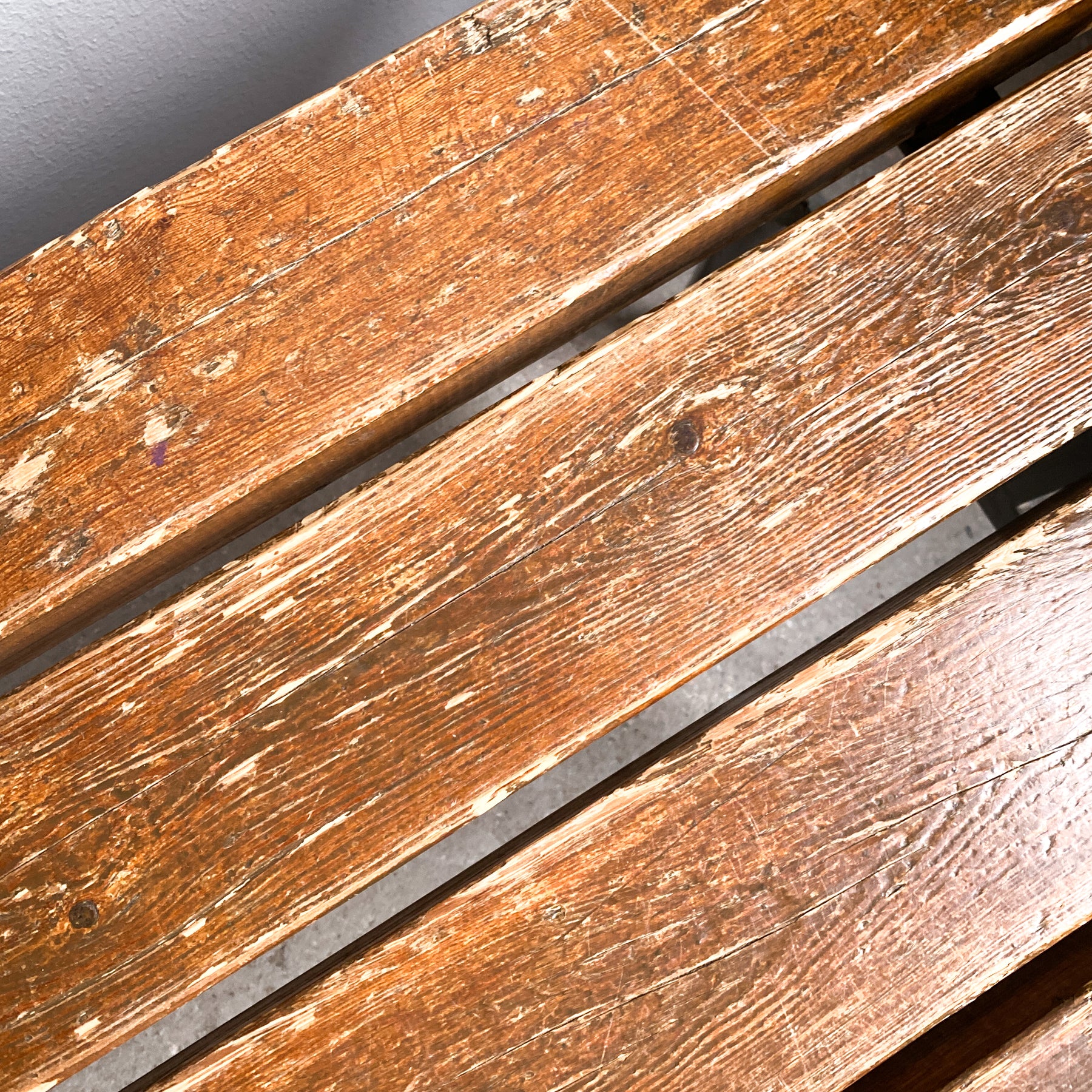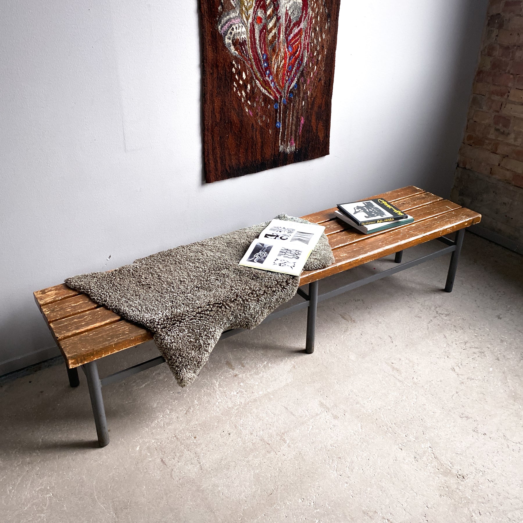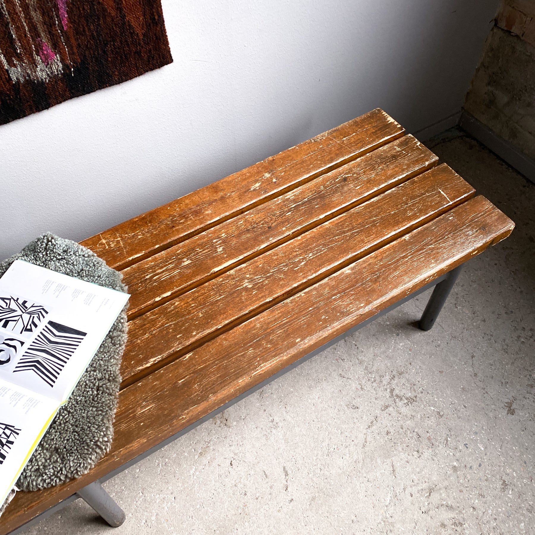 Bänk i trä med underrede i grålackerad metall/gjutjärn, från en gammal skola. 40/50-tal. TUNG!