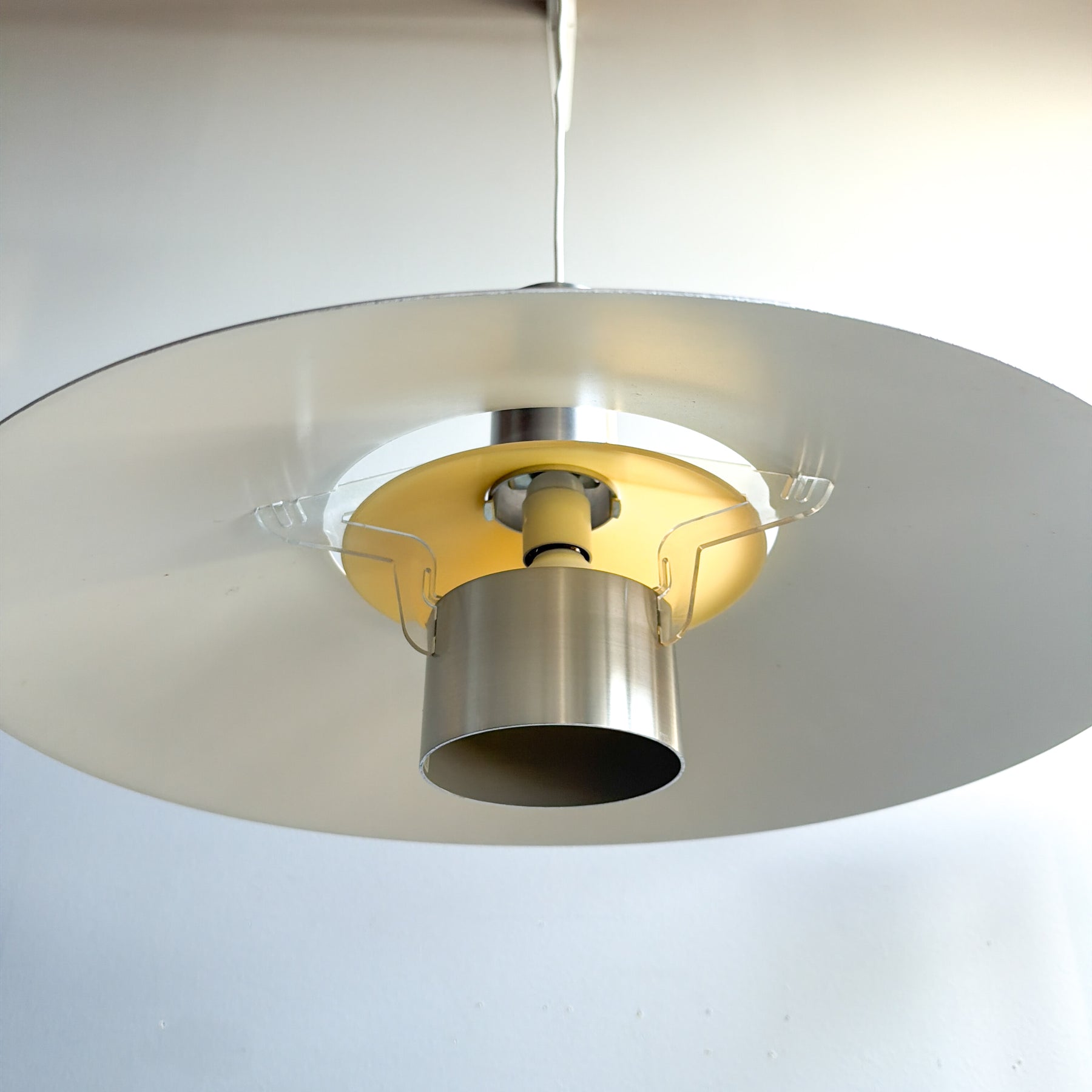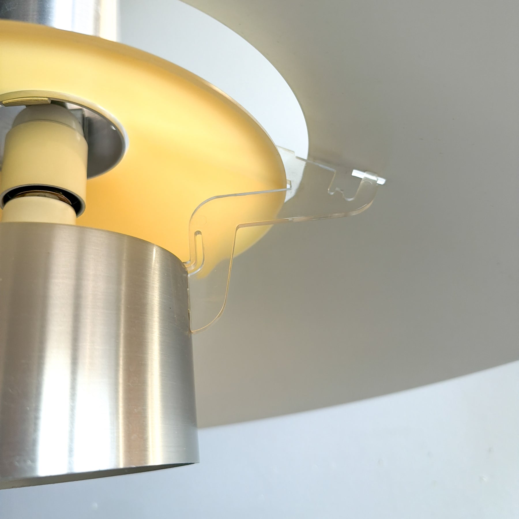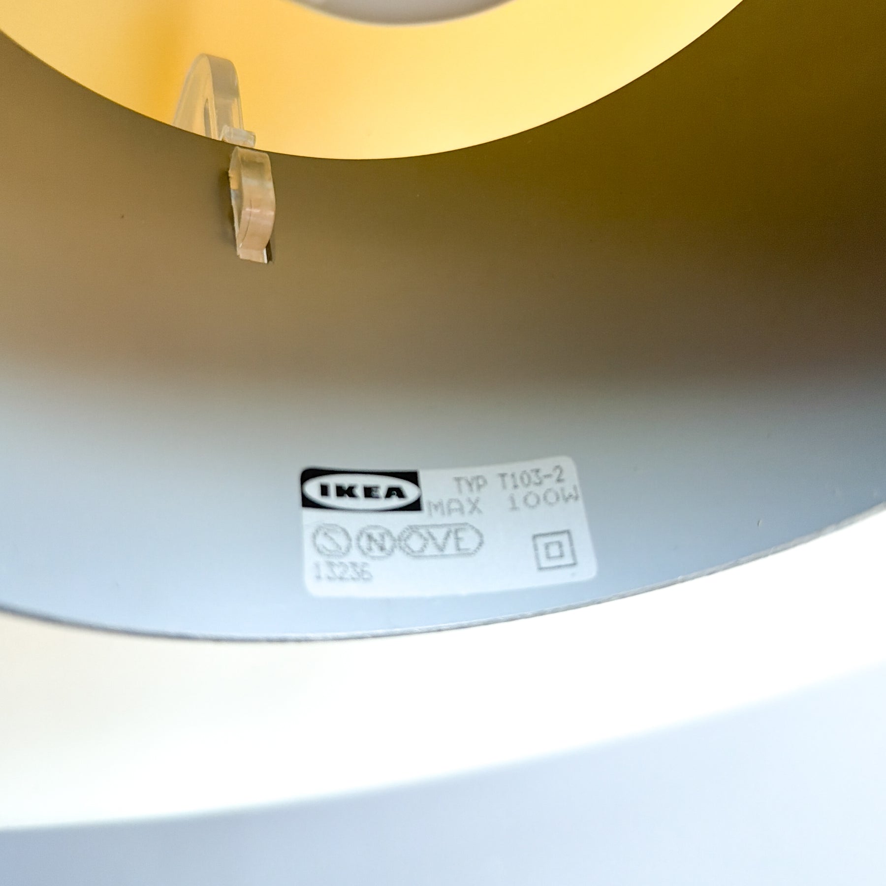 Taklampa Galax 60, design Bent Boysen för IKEA 1982. Skärm i aluminium med detaljer i plast. E27 sockel. Vit sladd med och nyare takkontakt.